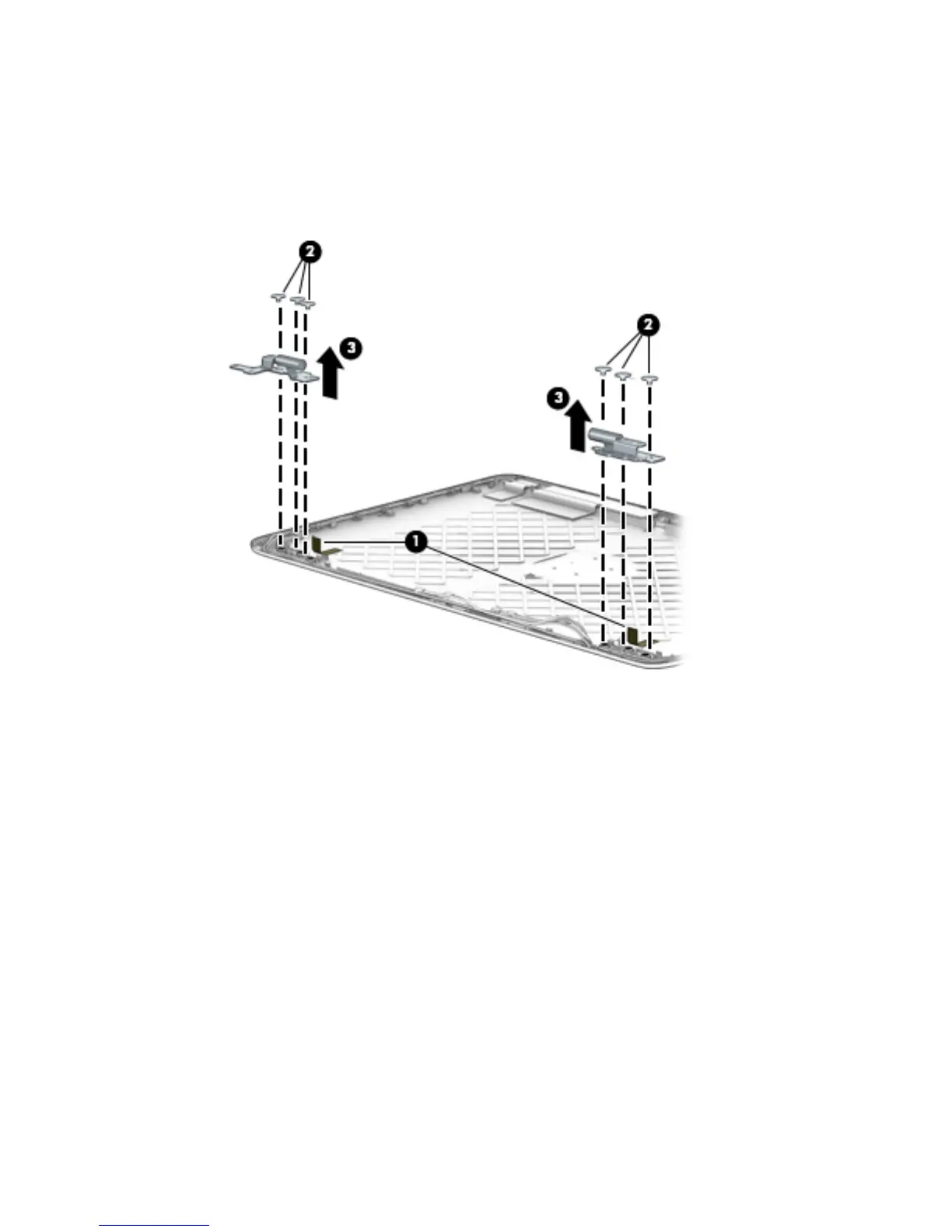 b. Remove the six Phillips PM2.0×3.0 broad head screws (2) that secure the display hinges to the