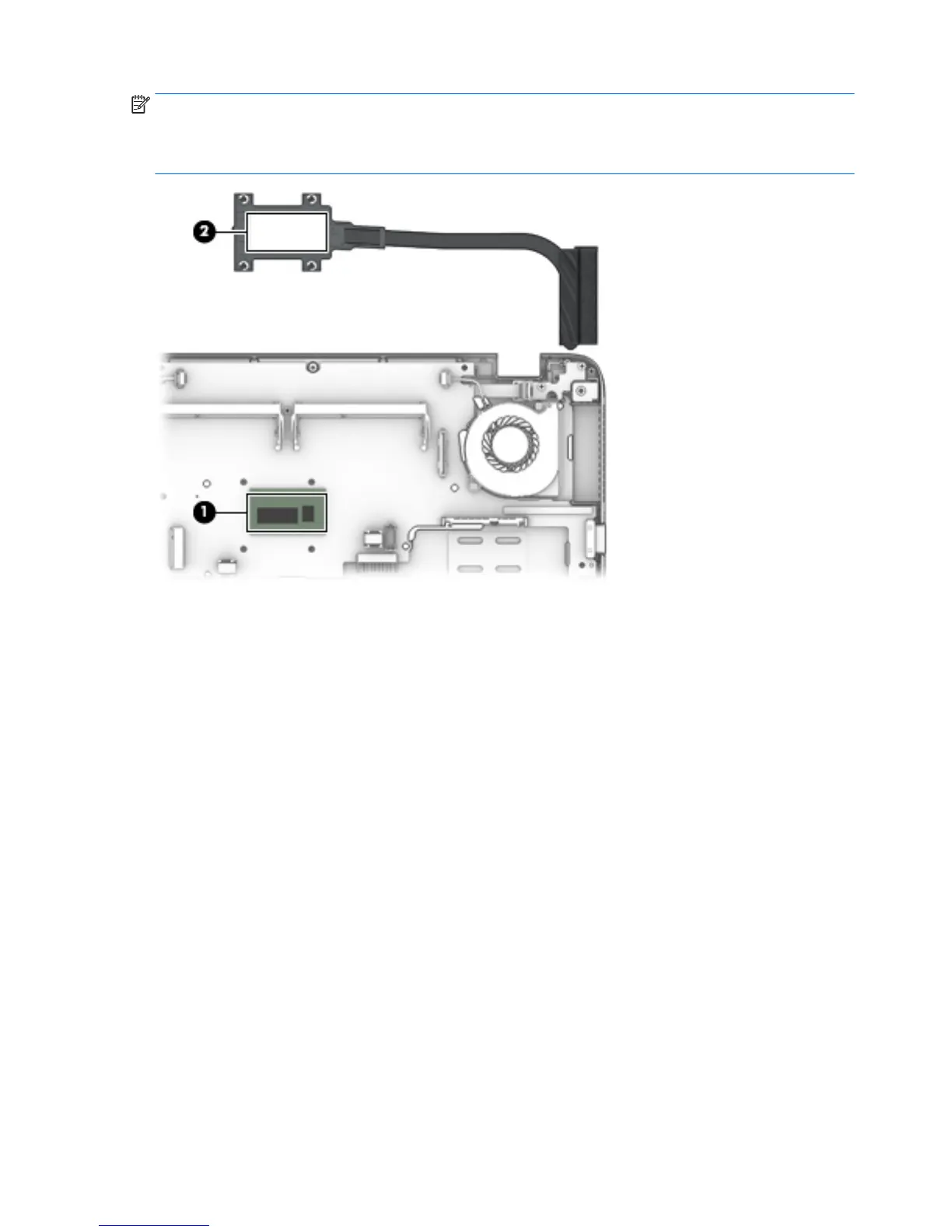heat sink and system board spare part kits. Thermal paste is used on the processor (1) and the heat sink