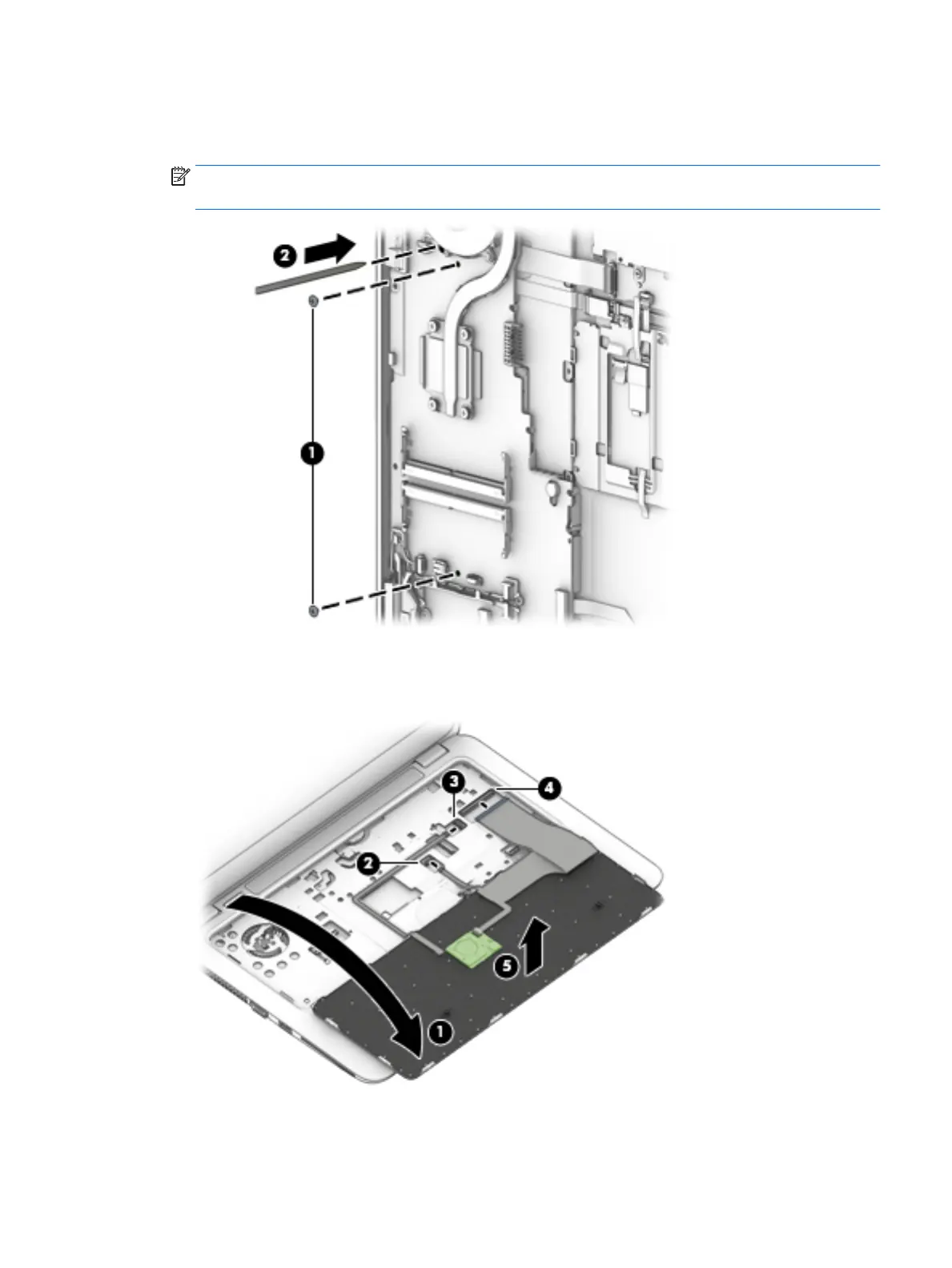 NOTE: Cables connect the bottom of the keyboard to the system board. Make sure not to prematurely