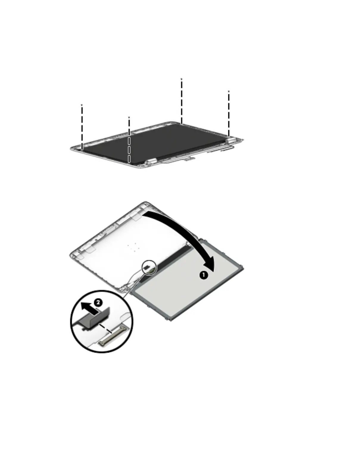 screws that secure the panel to the display enclosure, and then lift the top of the panel upward.