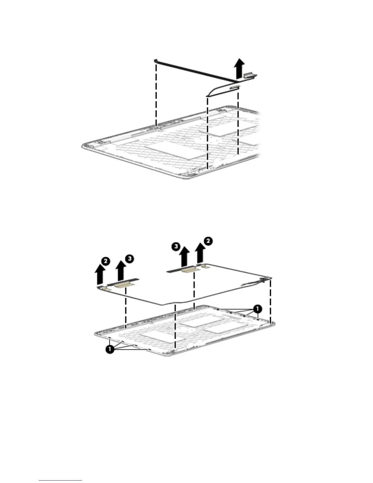 a. Release the antenna cables from the clips (1) and routing channel built into the display enclosure.