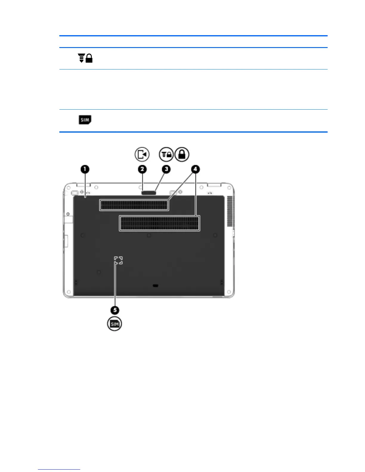 SIM slot (select models only) Supports a wireless subscriber identity module (SIM). The