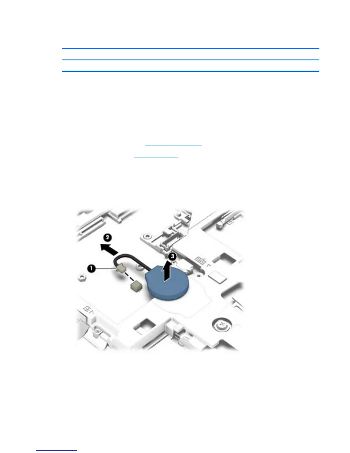 2. Slide the battery out from the bottom cover (2), and then remove the battery (3). (The RTC battery is