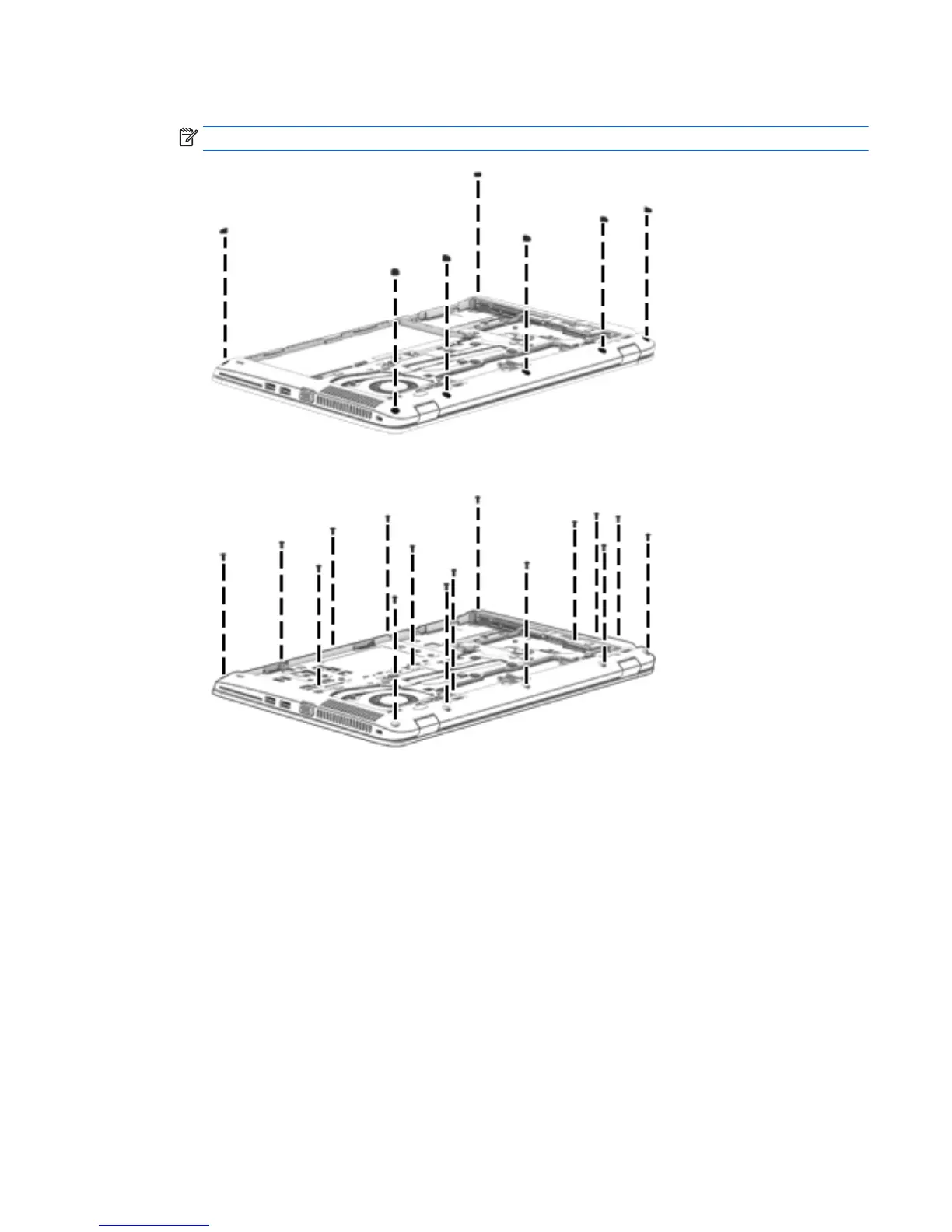 3. Remove the 16 Torx T8M2.5×5.0 screws that secure the internal base enclosure to the computer.