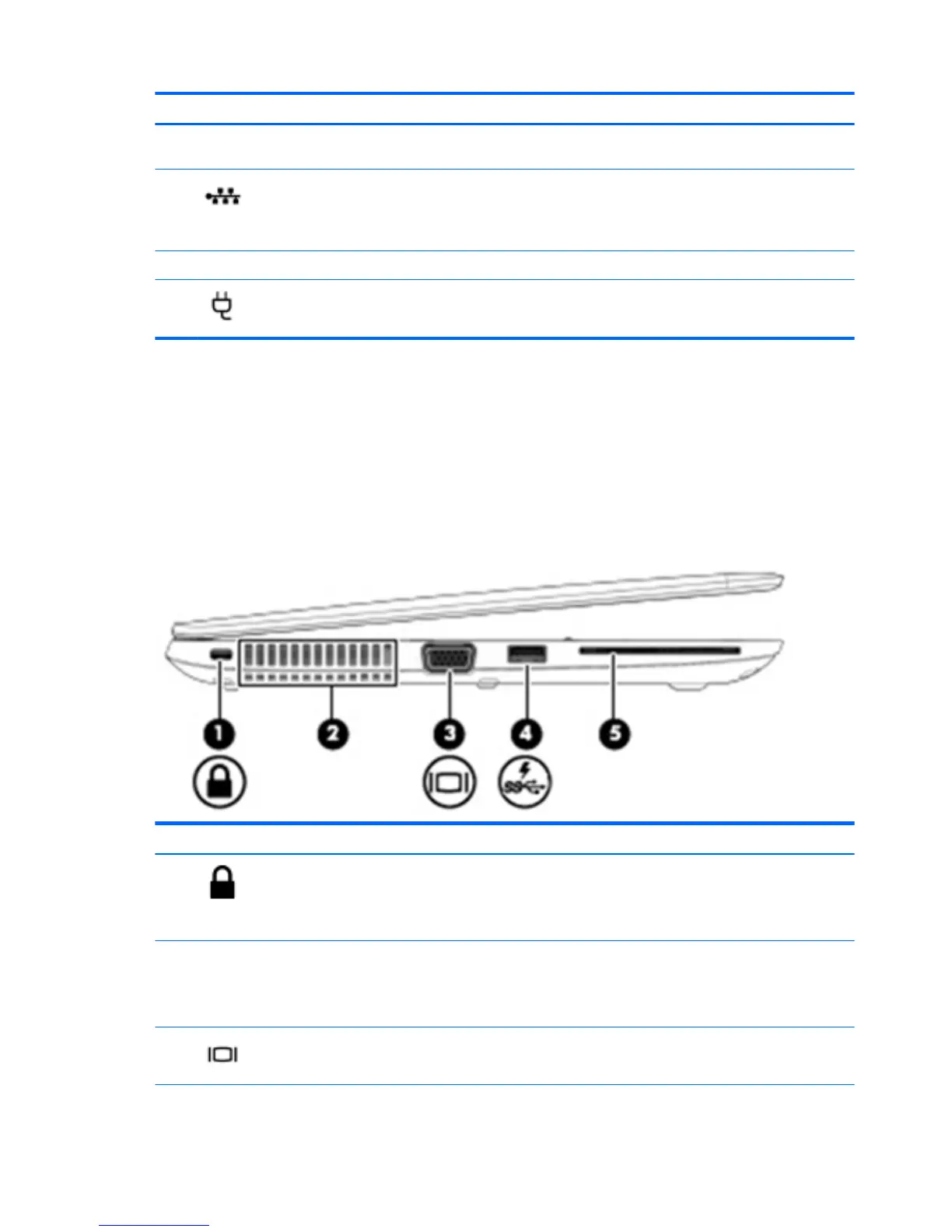 (1) Security cable slot Attaches an optional security cable to the computer.