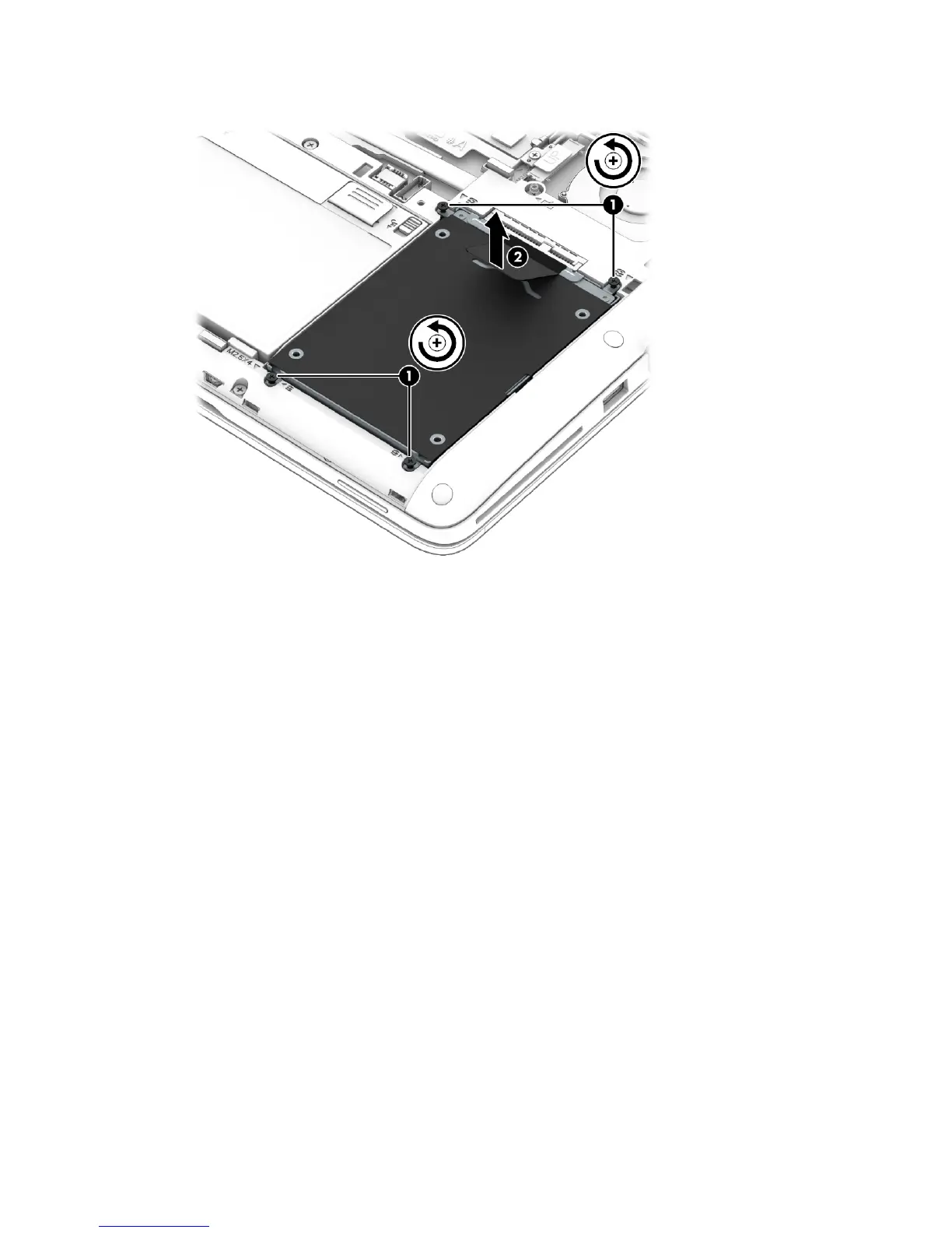 b. Remove the four Phillips PM2.75×3.5 screws (1) that secure the hard drive bracket to the hard