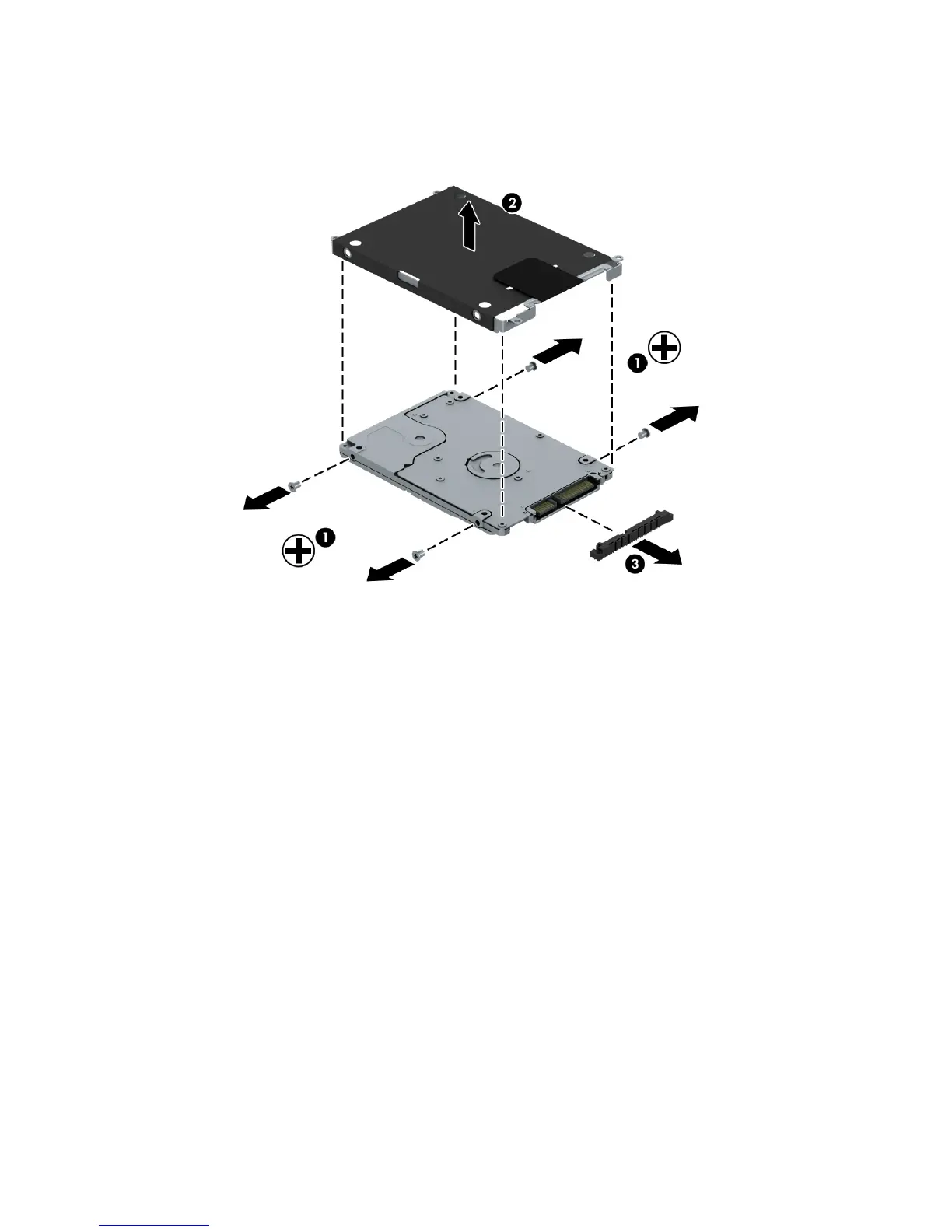 d. Remove the hard drive connector adapter (3) from the hard drive.