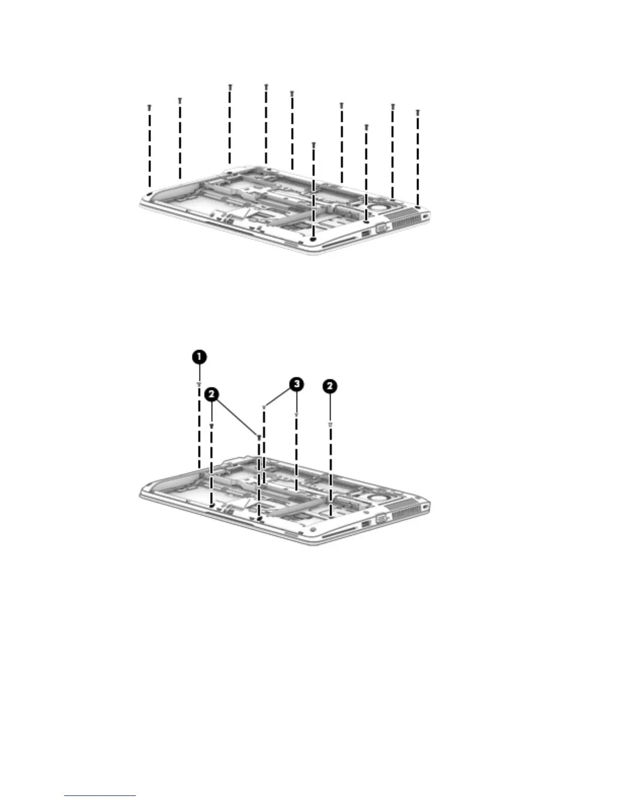9. Remove the following screws that secure the top cover to the base enclosure:
