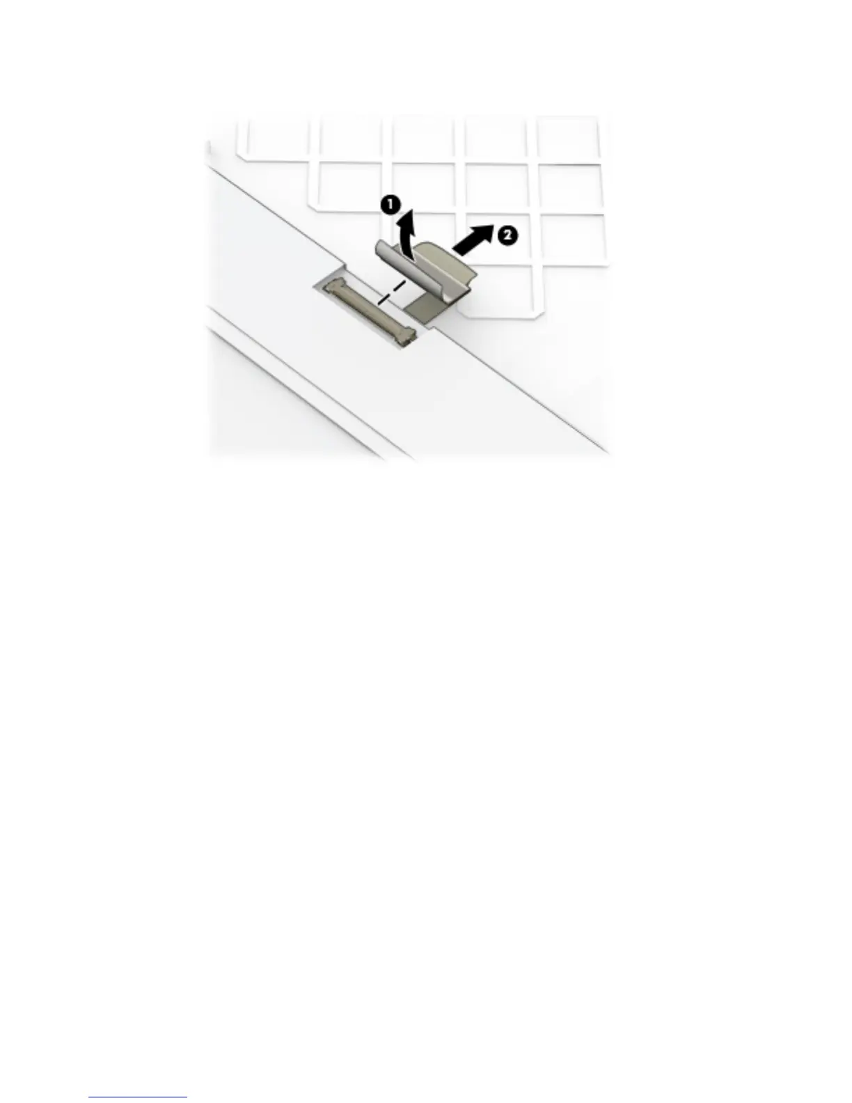d. Disconnect the display panel cable (2) from the display panel.