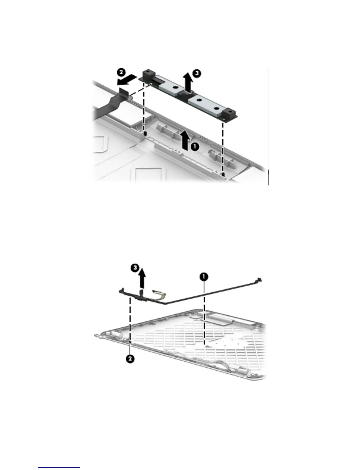 b. Remove the six Phillips PM2.0×3.0 broad head screws (2) that secure the display hinges to the