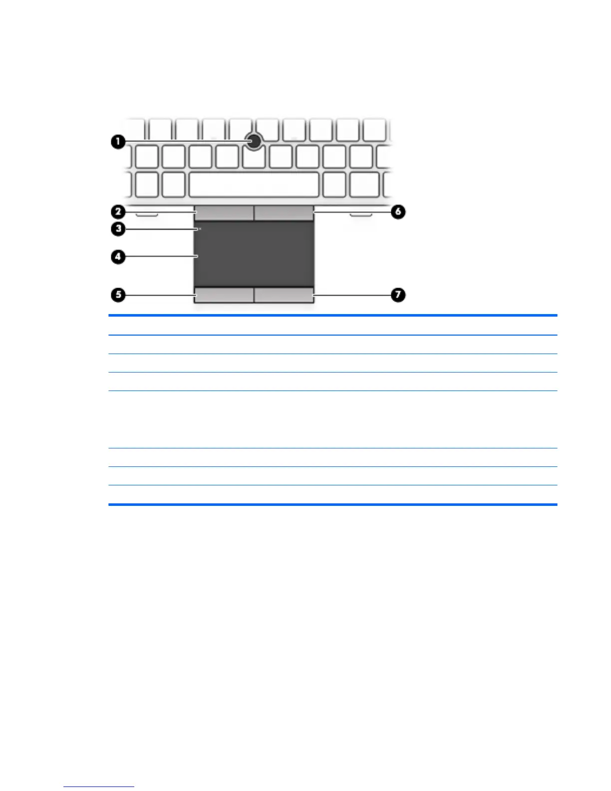 (7) Right TouchPad button Functions like the right button on an external mouse.
