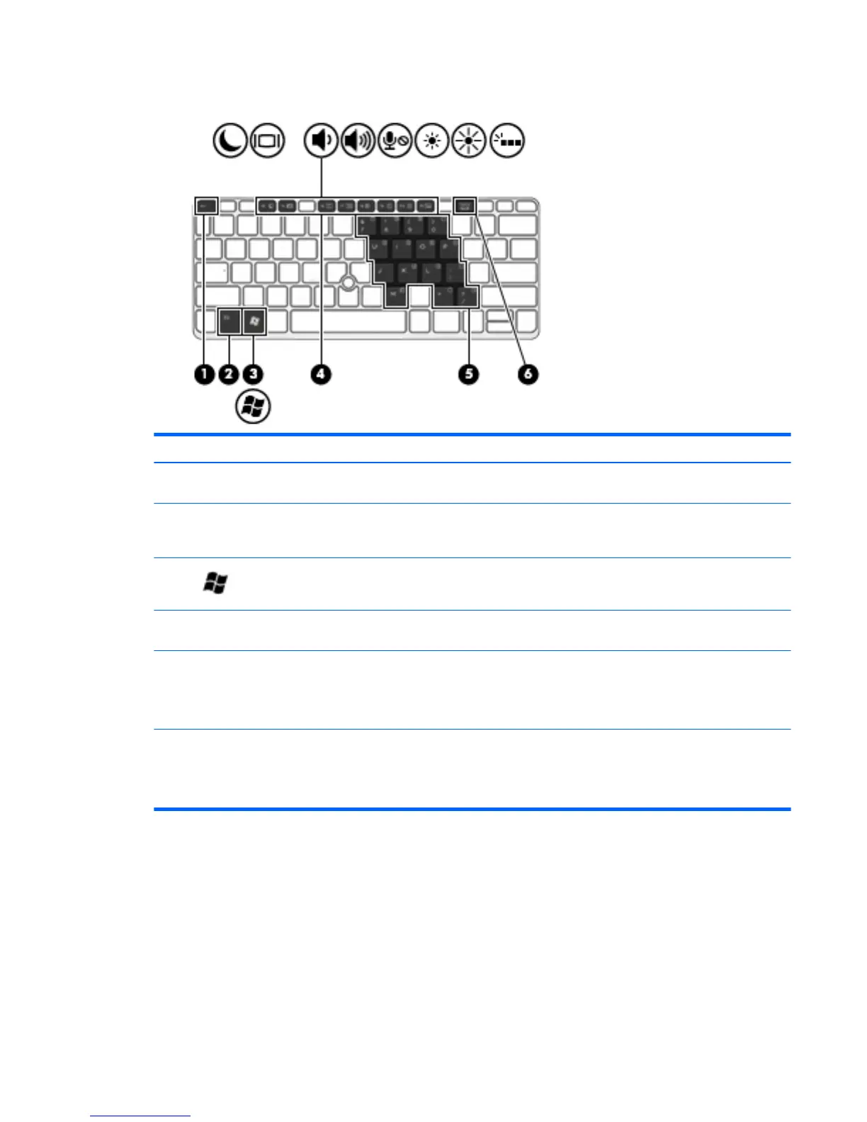 (6) num lk key Turns the embedded numeric keypad on and off when pressed