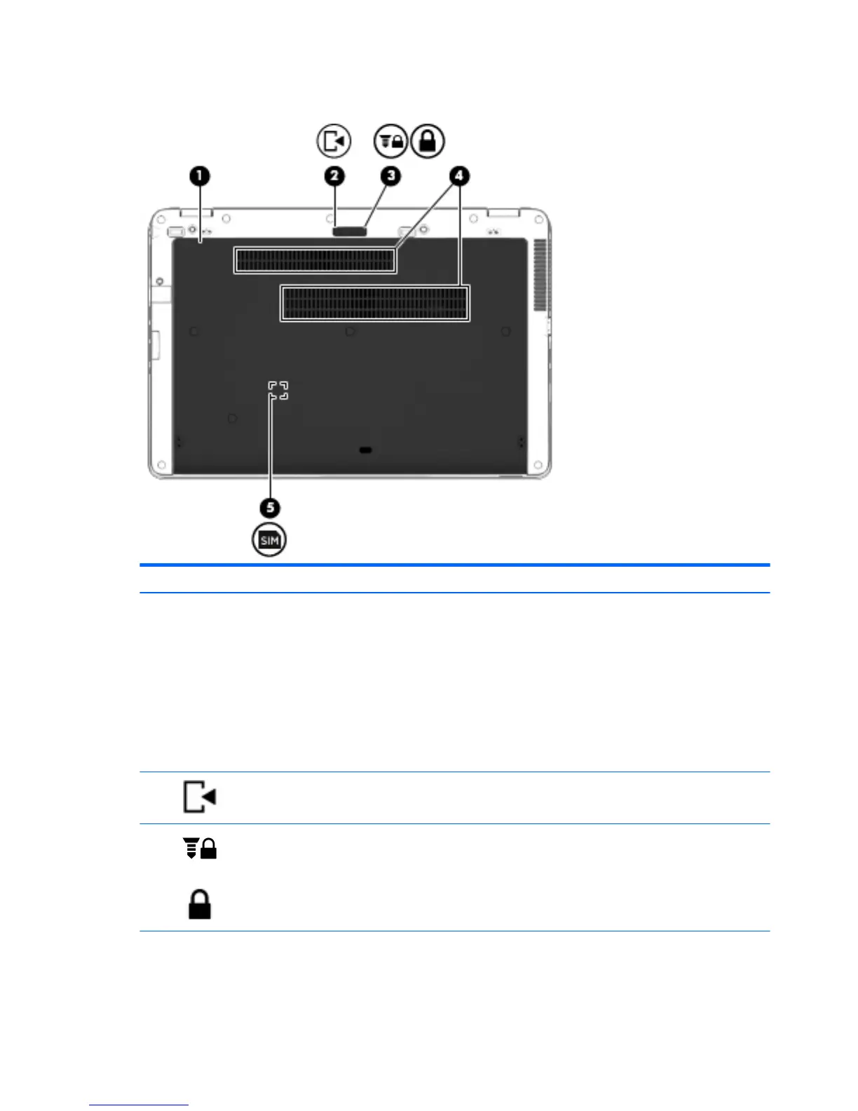 (1) Service door Provides access to the hard drive bay, the wireless LAN