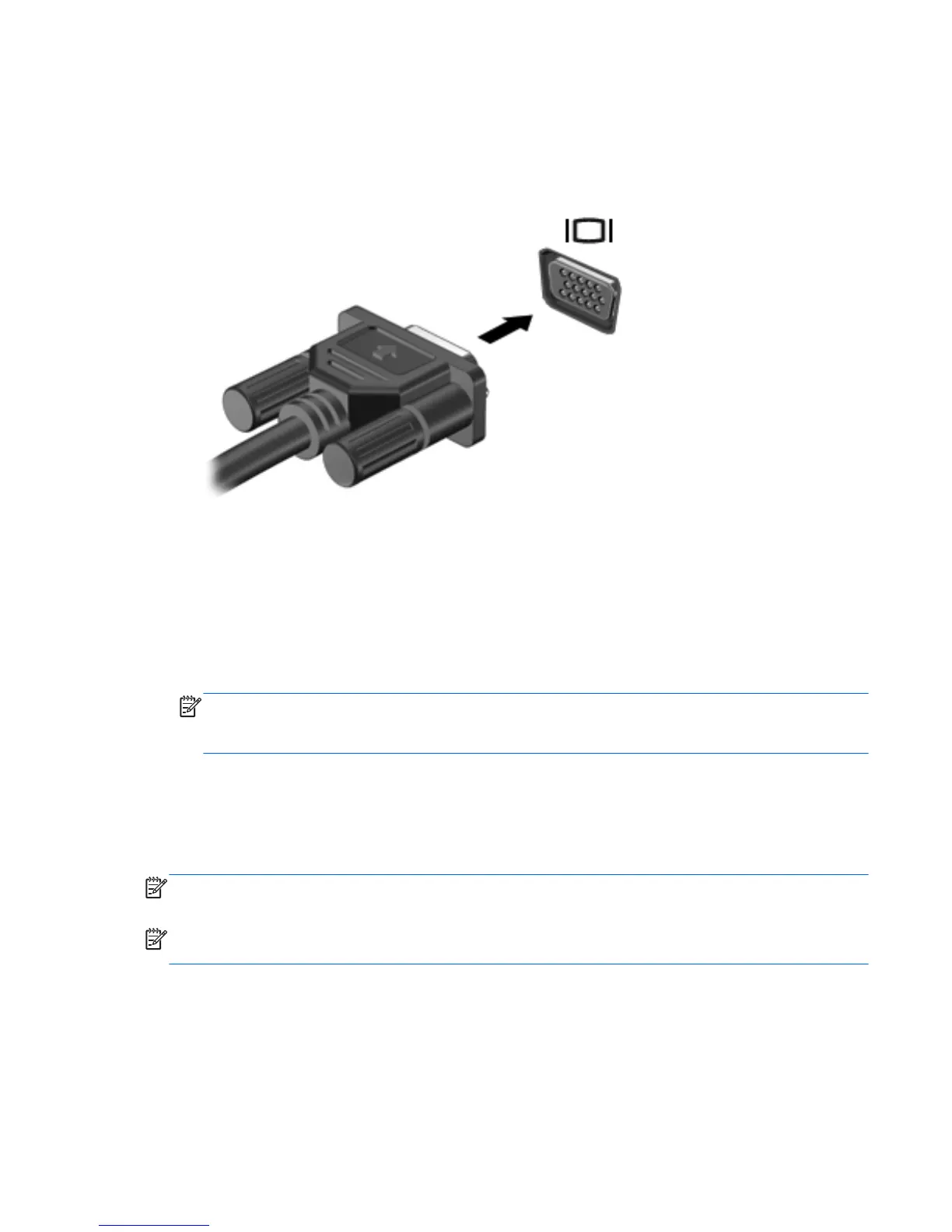 1. To connect a VGA display device, connect the device cable to the external monitor port.