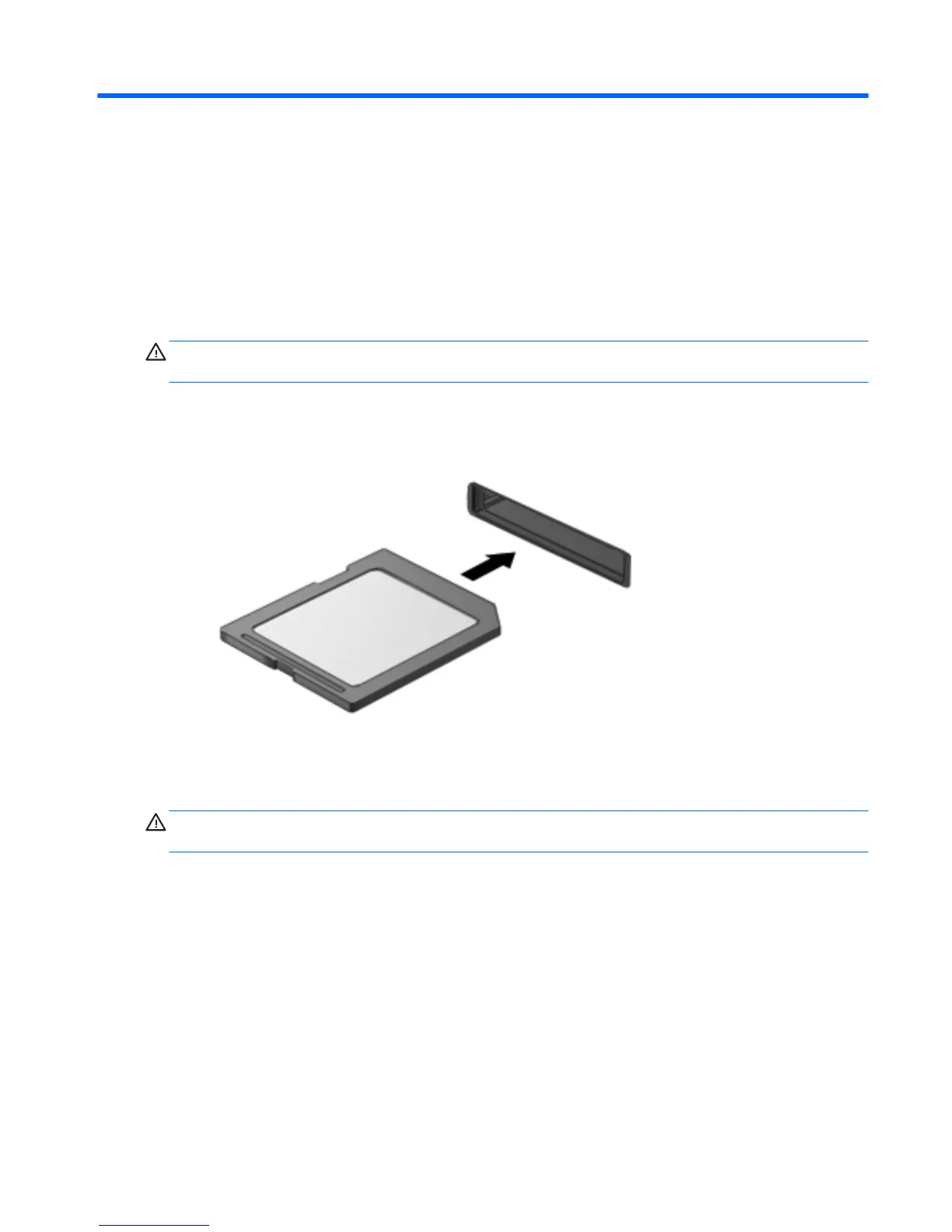 CAUTION: To reduce the risk of damage to the memory card connectors, use minimal force to insert a