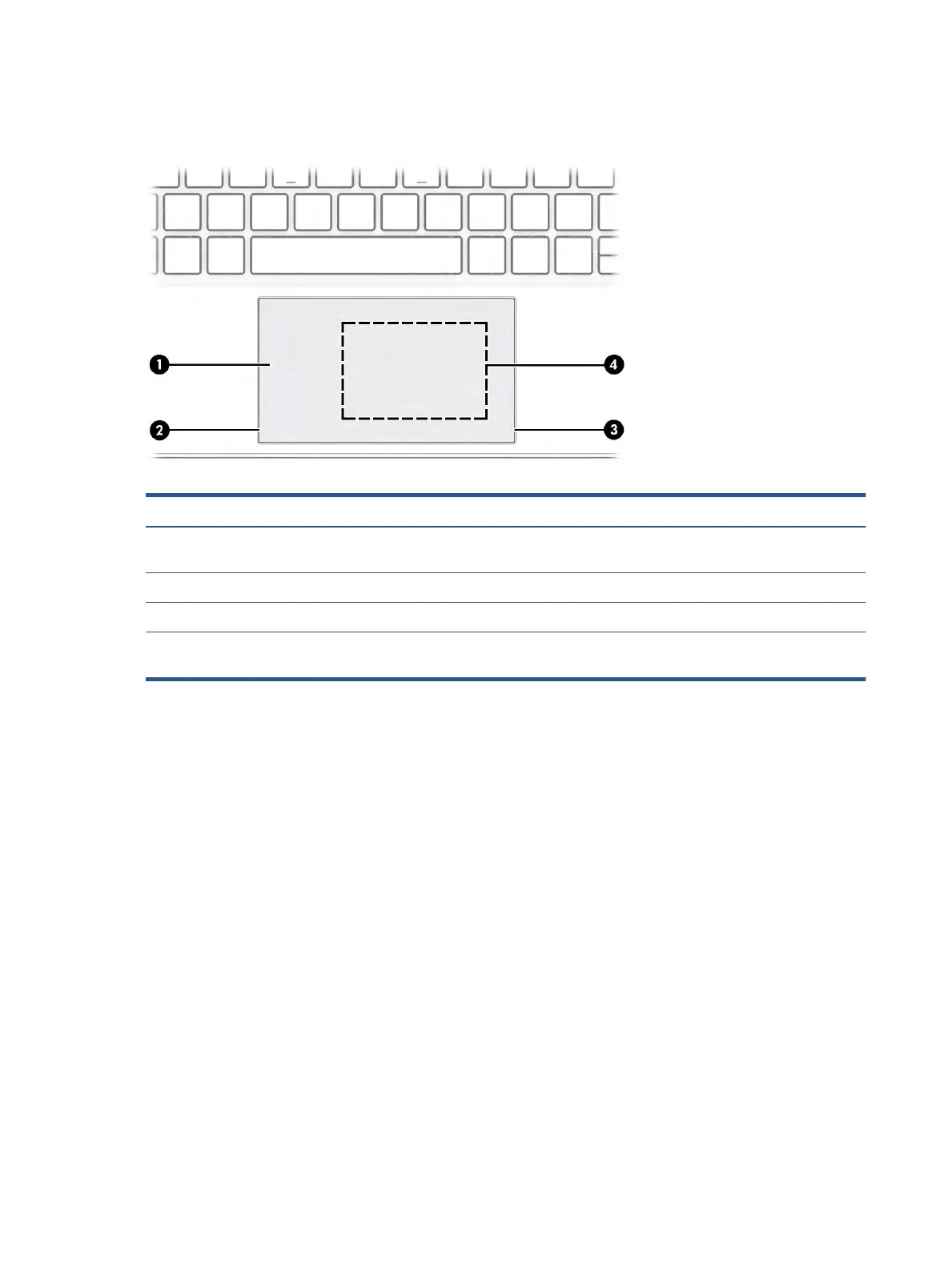 (1) Touchpad zone Reads your nger gestures to move the pointer or activate items on