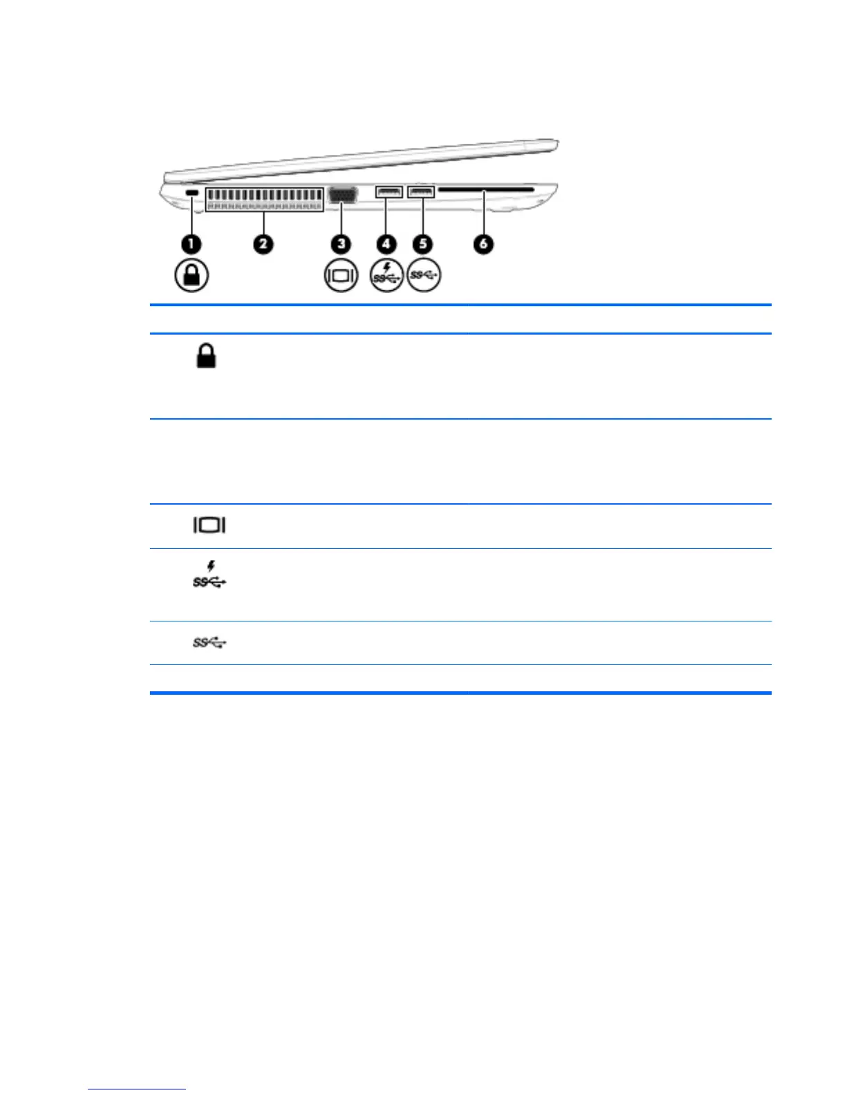 USB 3.0 charging port Connects optional USB 3.0 devices and provides enhanced