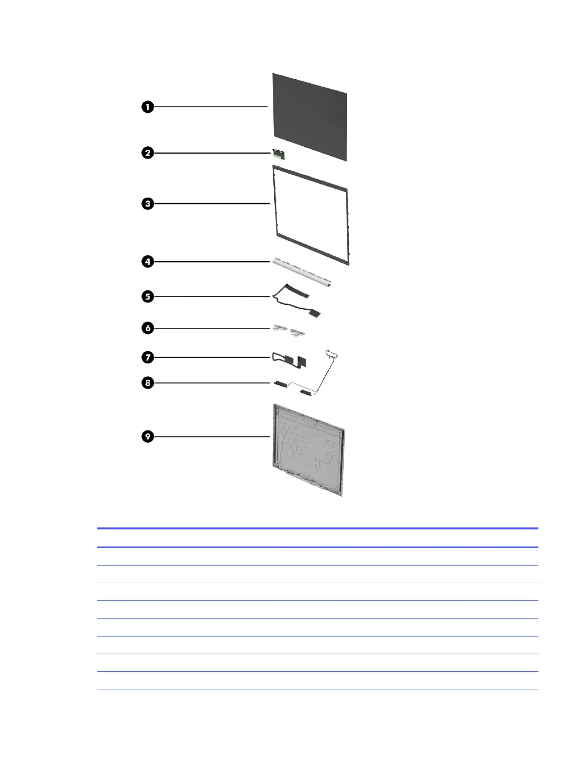 Table 3-2 Display component descriptions and part numbers