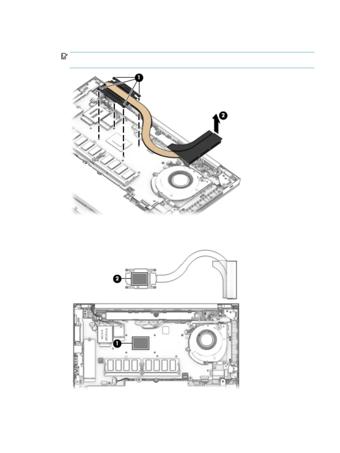 on the heat sink (1), and then remove the heat sink from the system board (2).