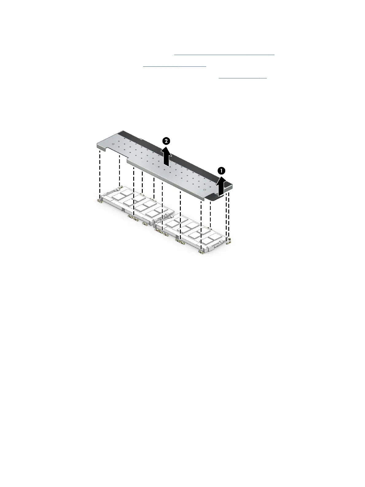 1. Use the tab (1) to lift the cover o the memory modules (2). The cover is held in place by clips on the