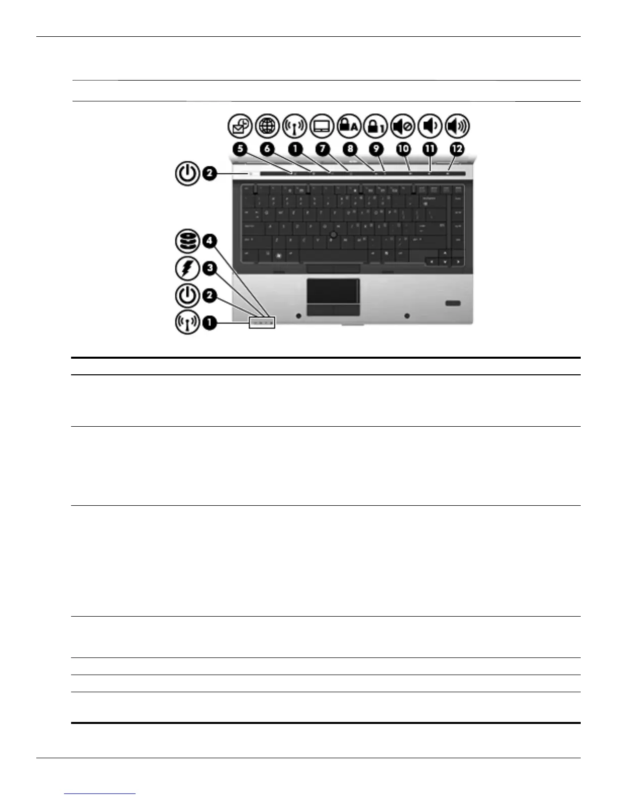 (7) TouchPad light ■ Turquoise: The TouchPad is on.