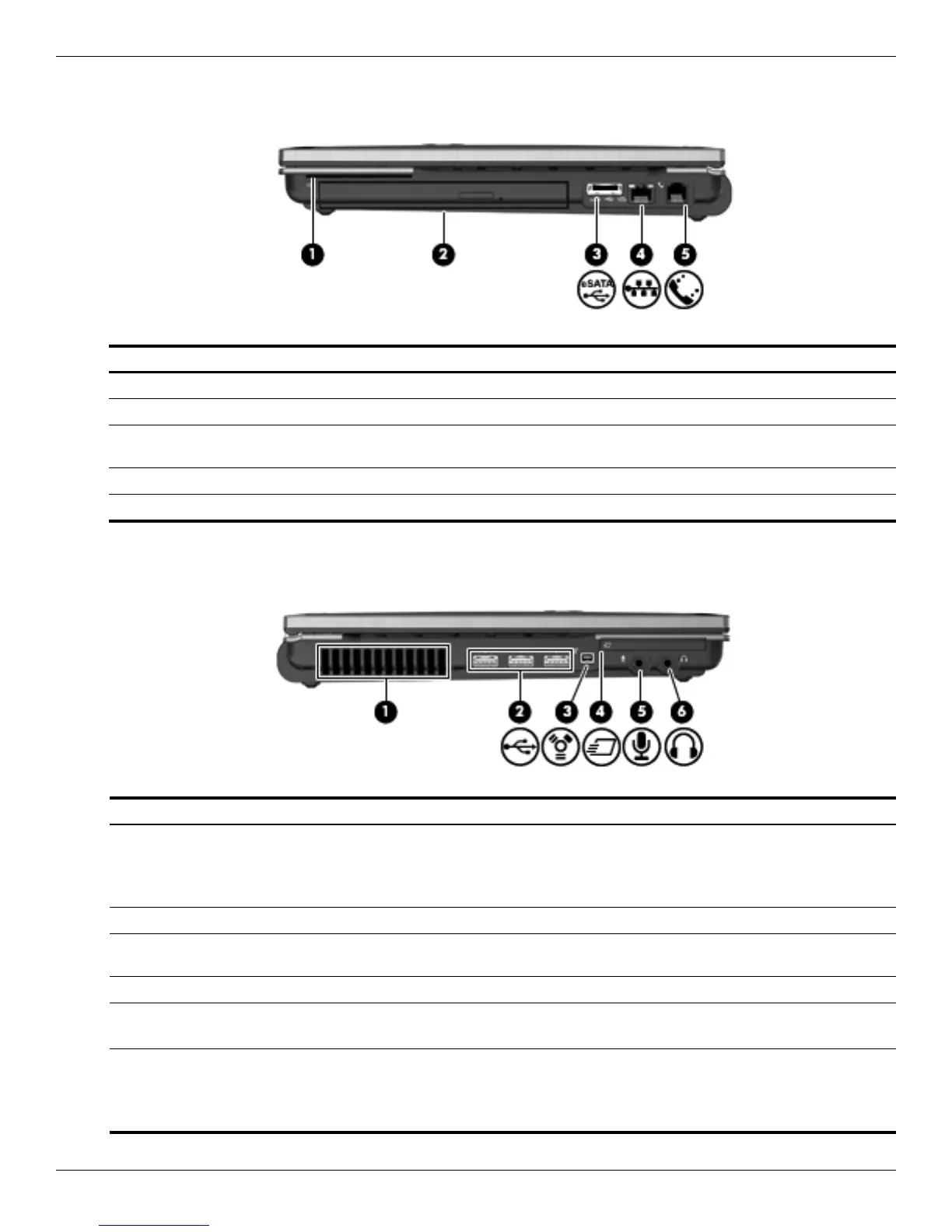 (3) eSATA/USB combo port Connects an optional high-performance eSATA component, such as a