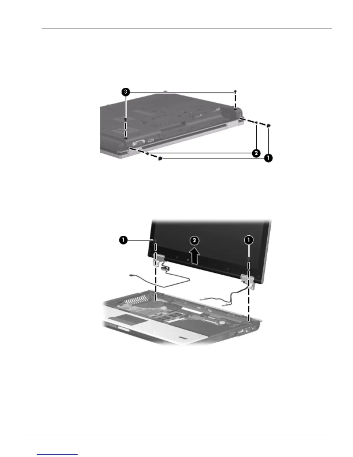 10. Remove the two Torx T8M2.5×6.0 screws 1 that secure the display assembly hinges to the base enclosure.