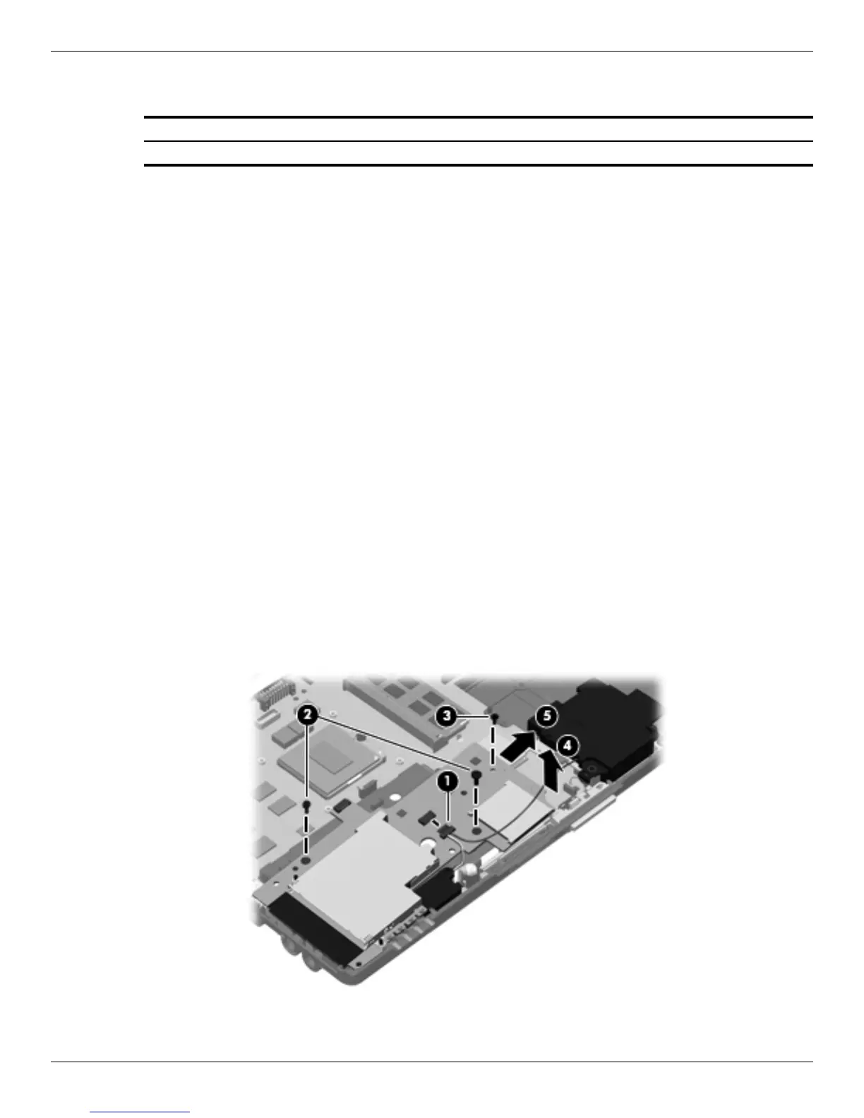1. Release the speaker cable from the connector 1 on the Audio/ExpressCard board.