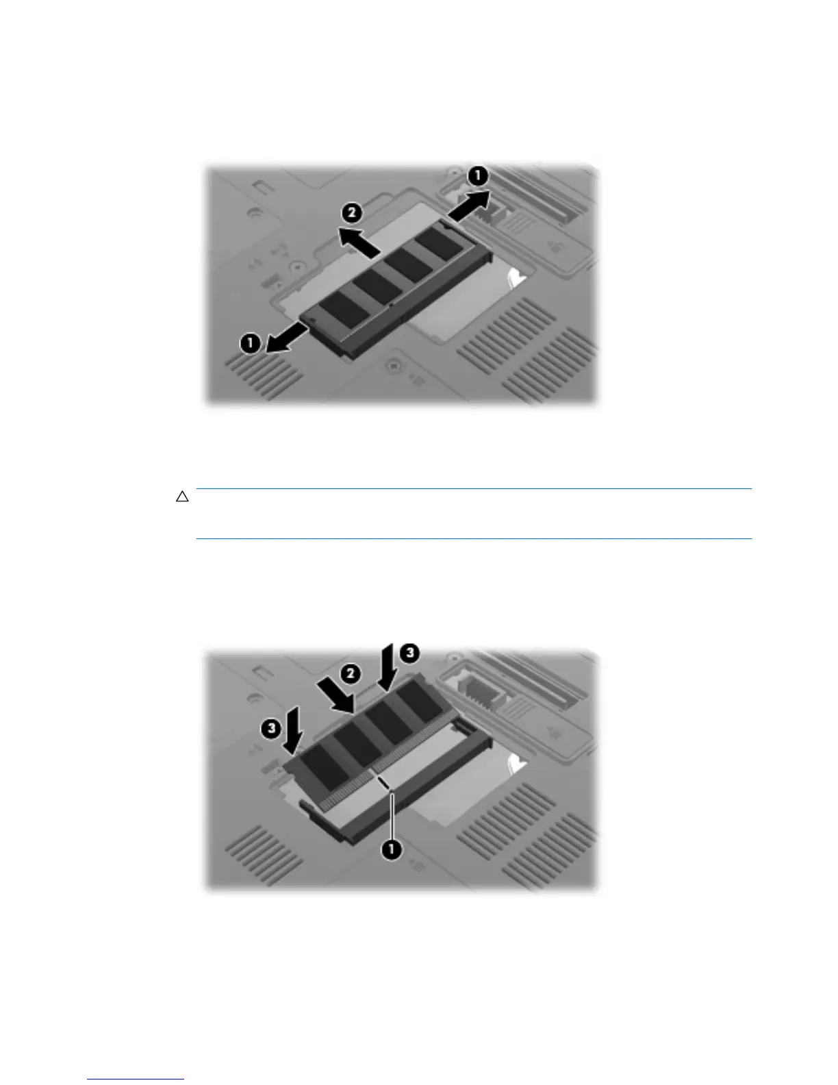 c. Gently press the memory module (3) down, applying pressure to both the left and right edges