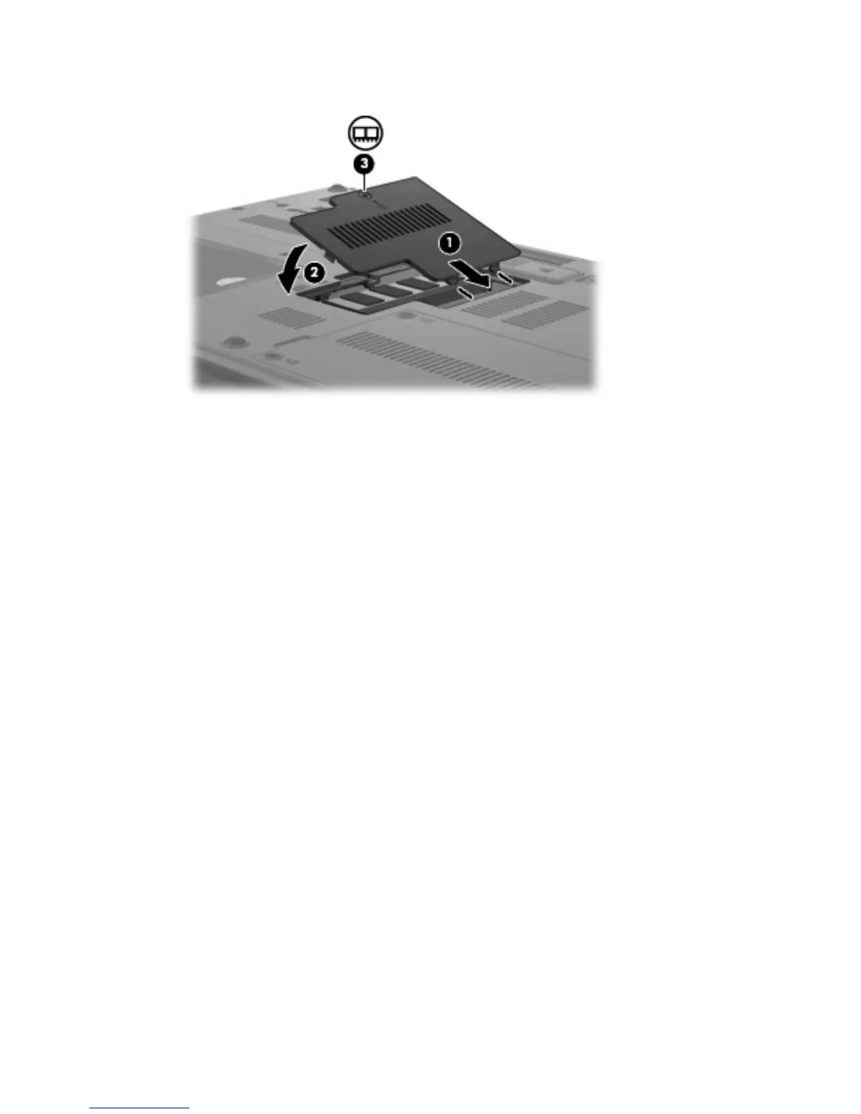 13. Tighten the memory module compartment cover screw (3).