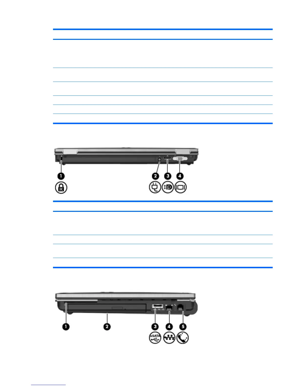 (1) Security cable slot Attaches an optional security cable to the computer.