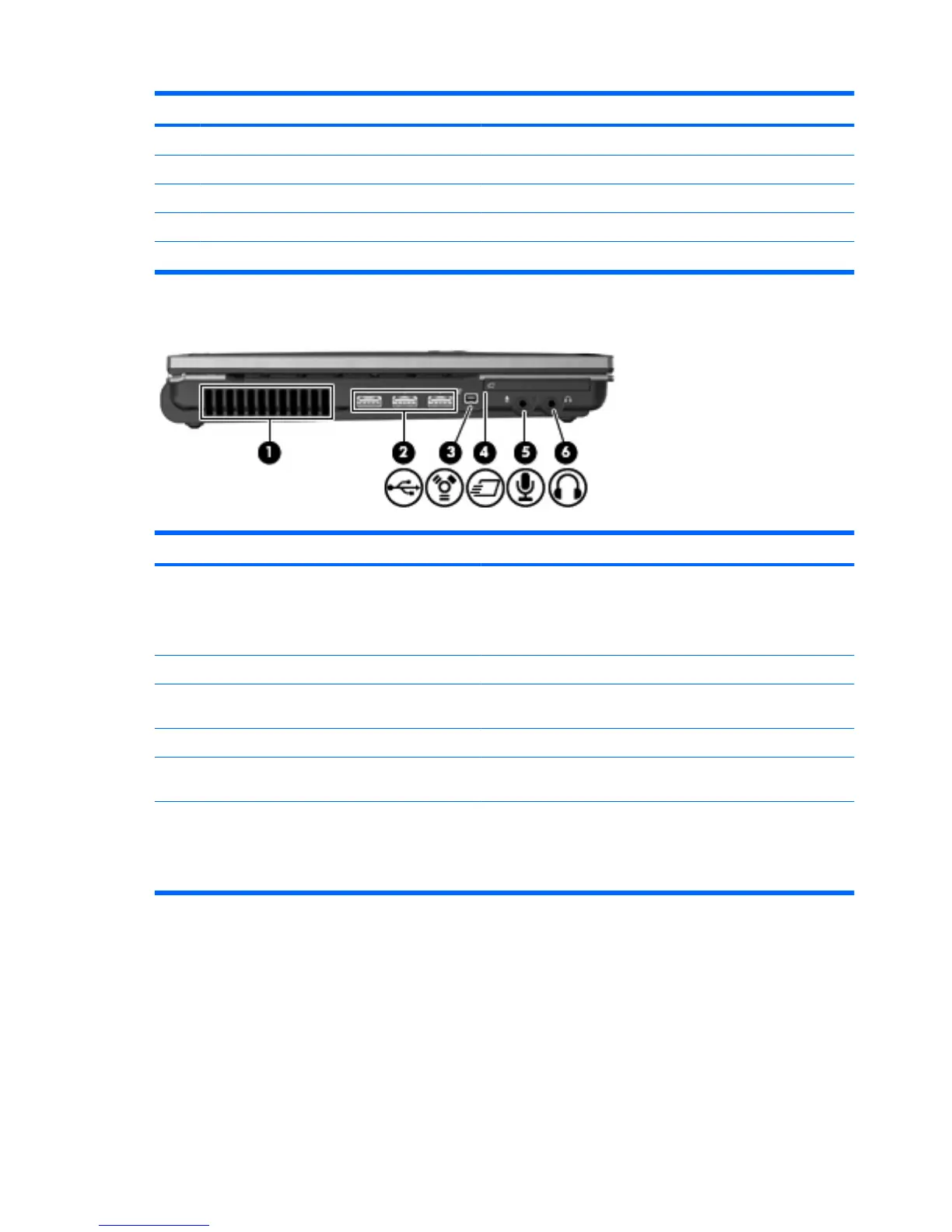 (3) 1394 port Connects an optional IEEE 1394 or 1394a device, such as a