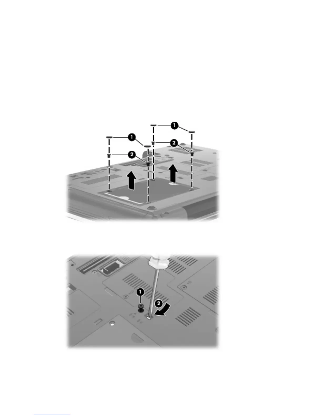 9. Using a flat-bladed screwdriver, gently push the tab to release the hard drive (2).