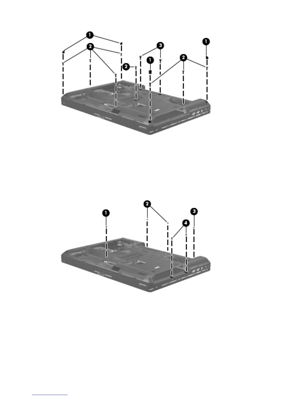 (4): 2 Phillips PM2.5×4.5 screws from the optical drive bay