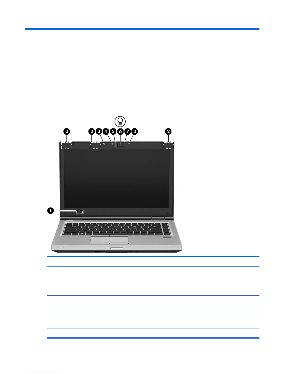 (4) Webcam light (select models only) On: The webcam is in use.