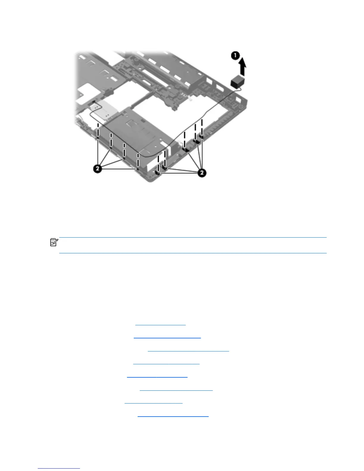 Battery on page 57), and then remove the following components: