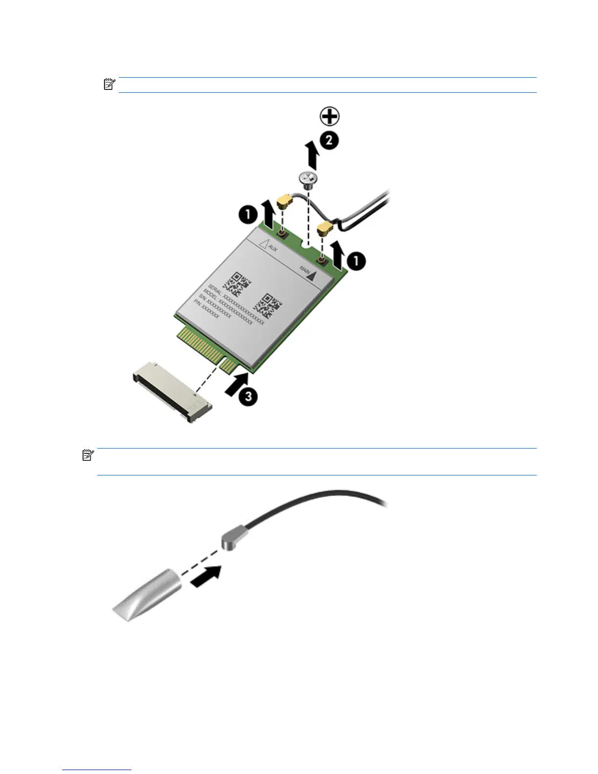 NOTE: If the WWAN antennas are not connected to the terminals on the WWAN module, the protective