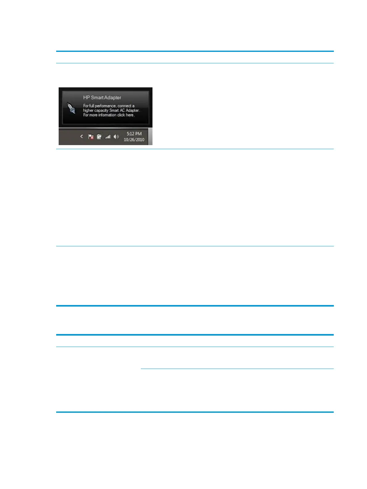 Note HP Smart AC adapter warning message: informs you that as power demands