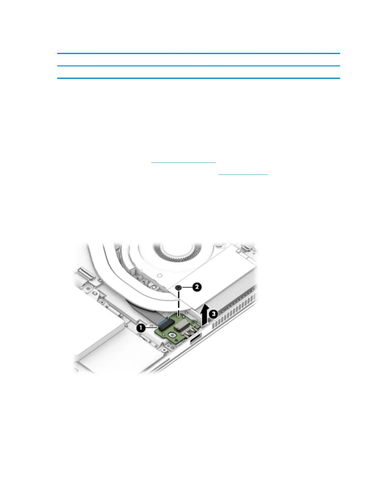1. Disconnect the cable from the USB board (1).