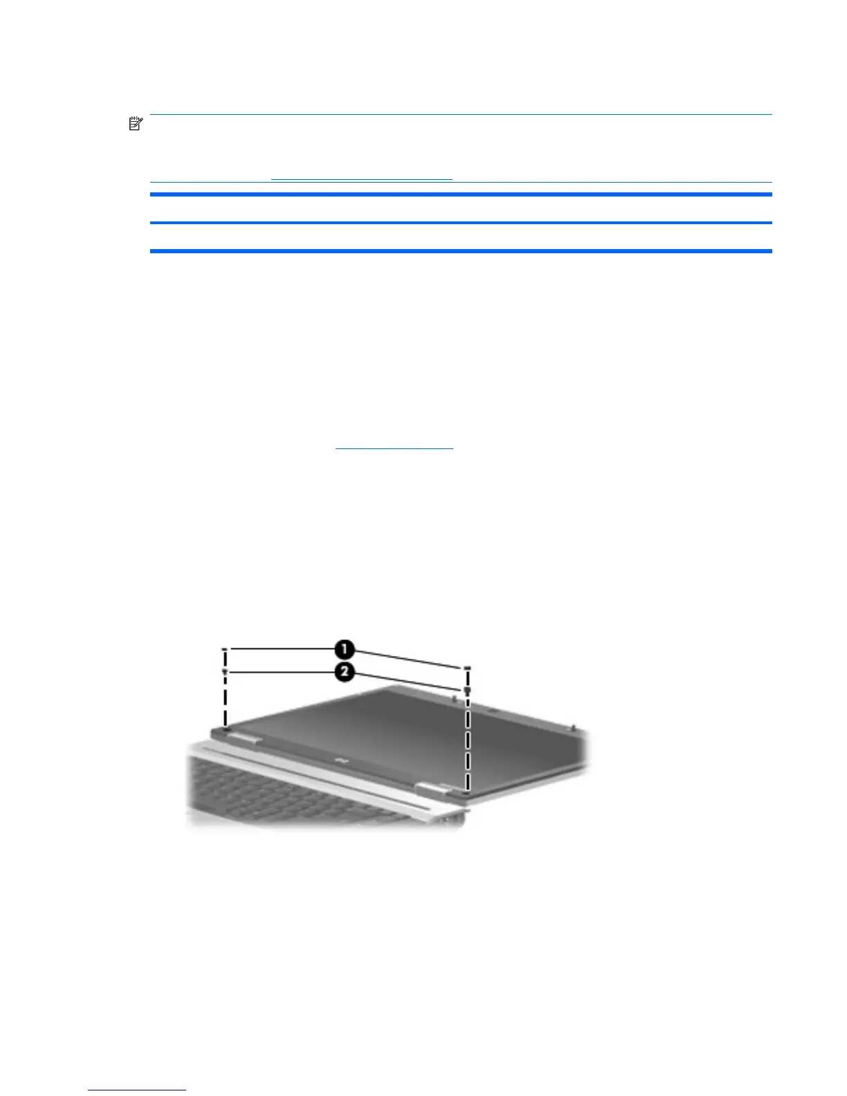 4. Remove the two Phillips PM2.5×7.0 screws (2) that secure the display bezel bottom edge to the