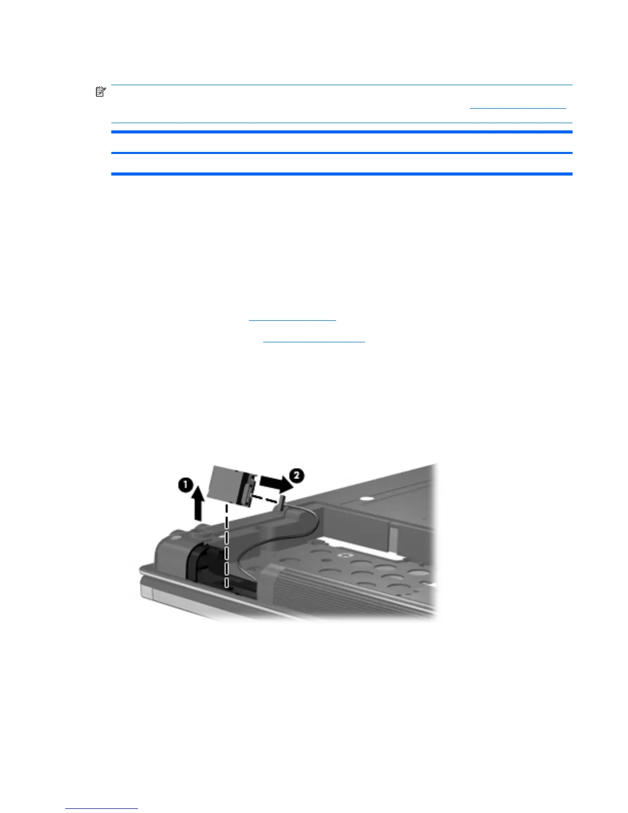 3. Remove the Bluetooth module (2) from the hard drive bay by lifting it straight up.