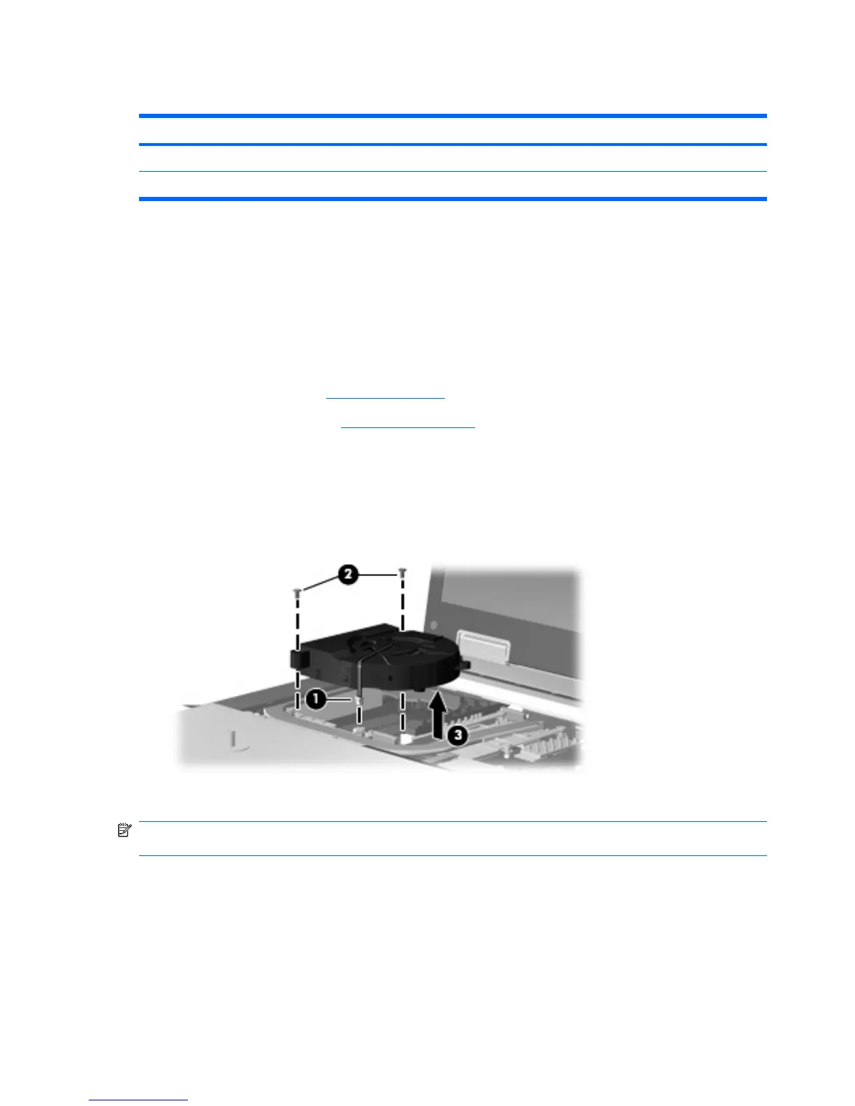 2. Remove the two Torx 8M2.5x8.0 screws (2) that secure the fan to the base enclosure.