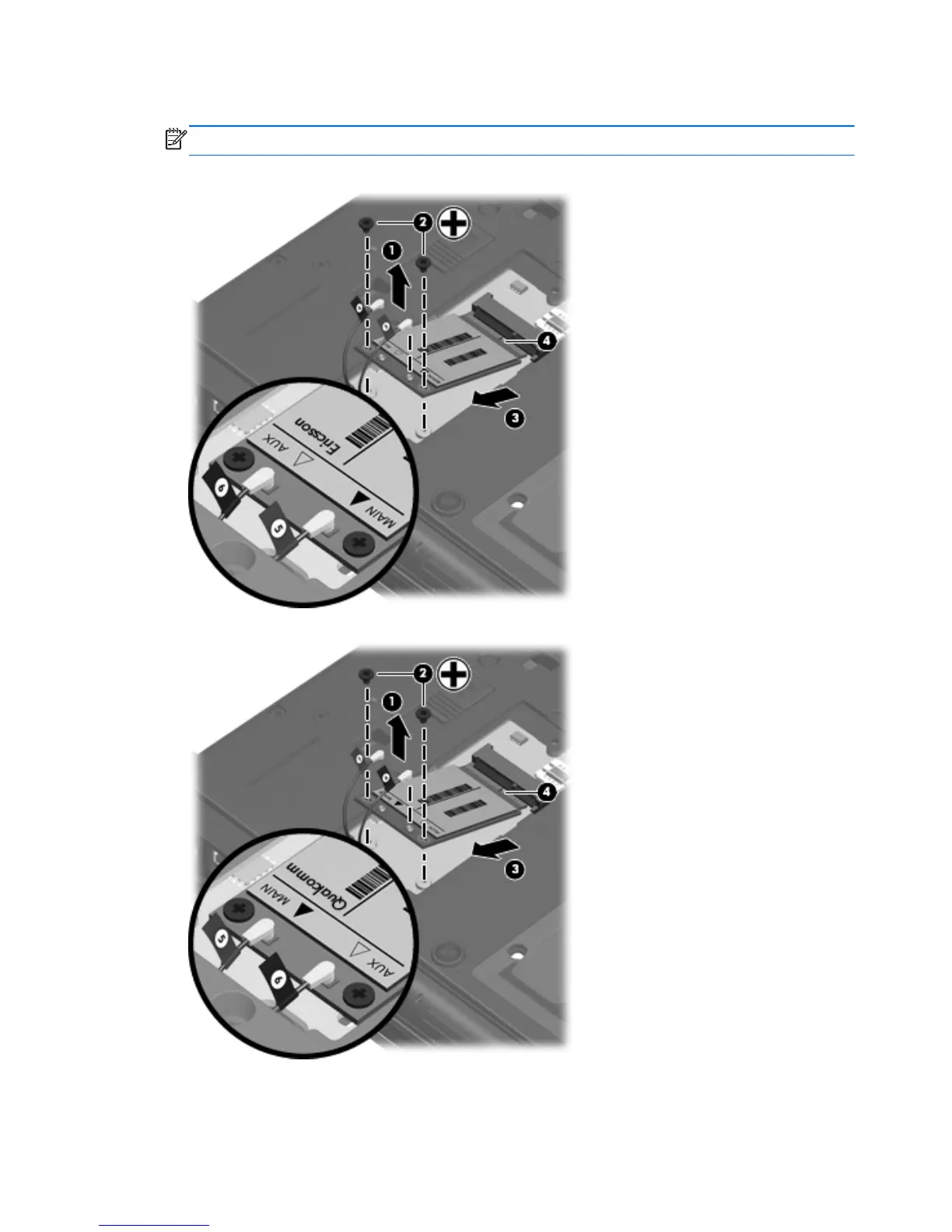 NOTE: WWAN modules are designed with a notch (4) to prevent incorrect insertion.