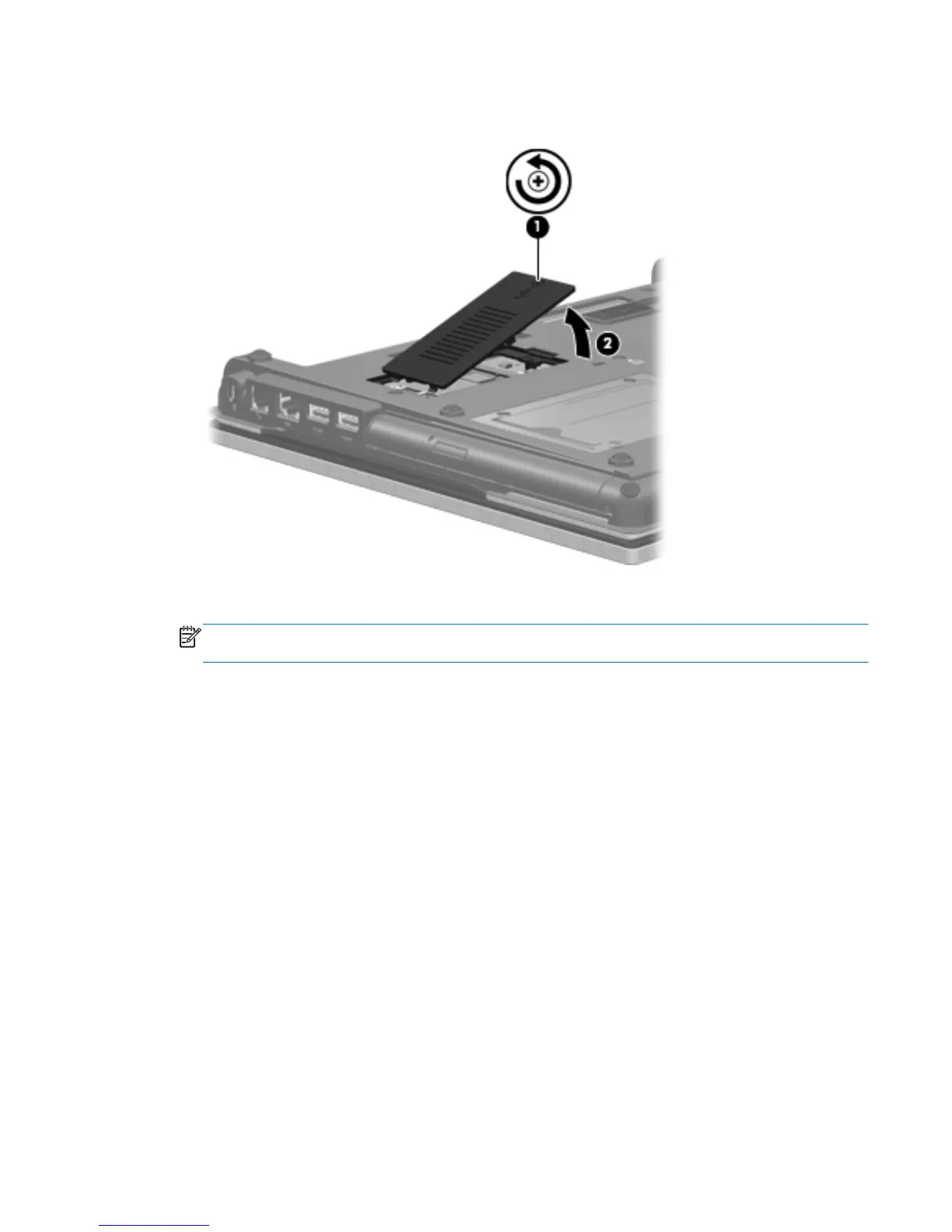 2. Lift the right side of the cover (2), swing it up and to the left, and remove the cover. The WWAN