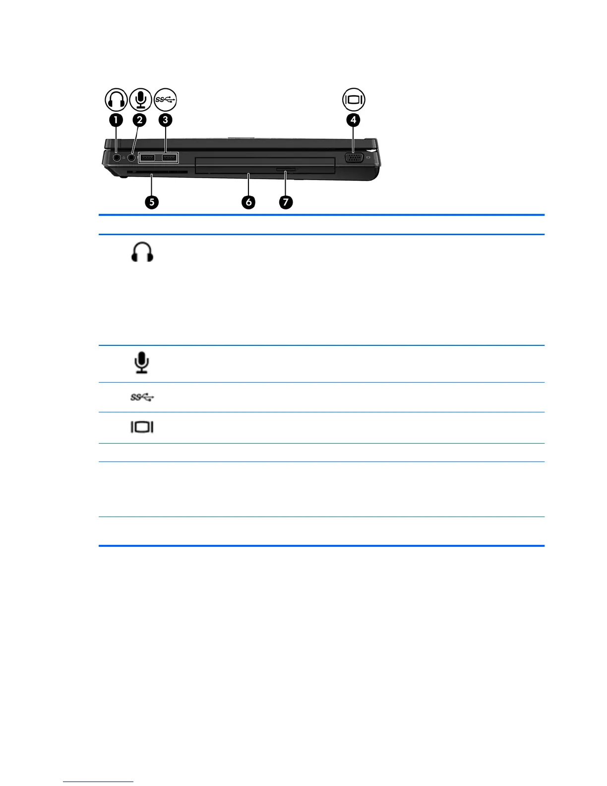 Audio-in (microphone) jack Connects an optional computer headset microphone,