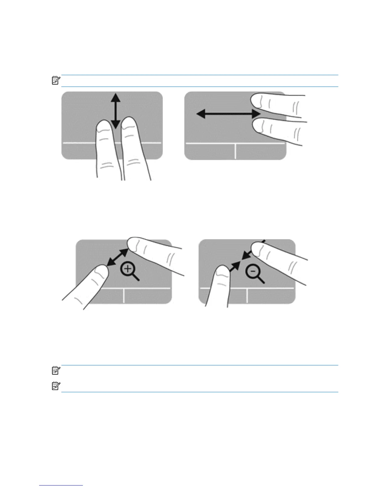 slightly apart on the TouchPad, and then drag them across the TouchPad in an up, down, left, or right