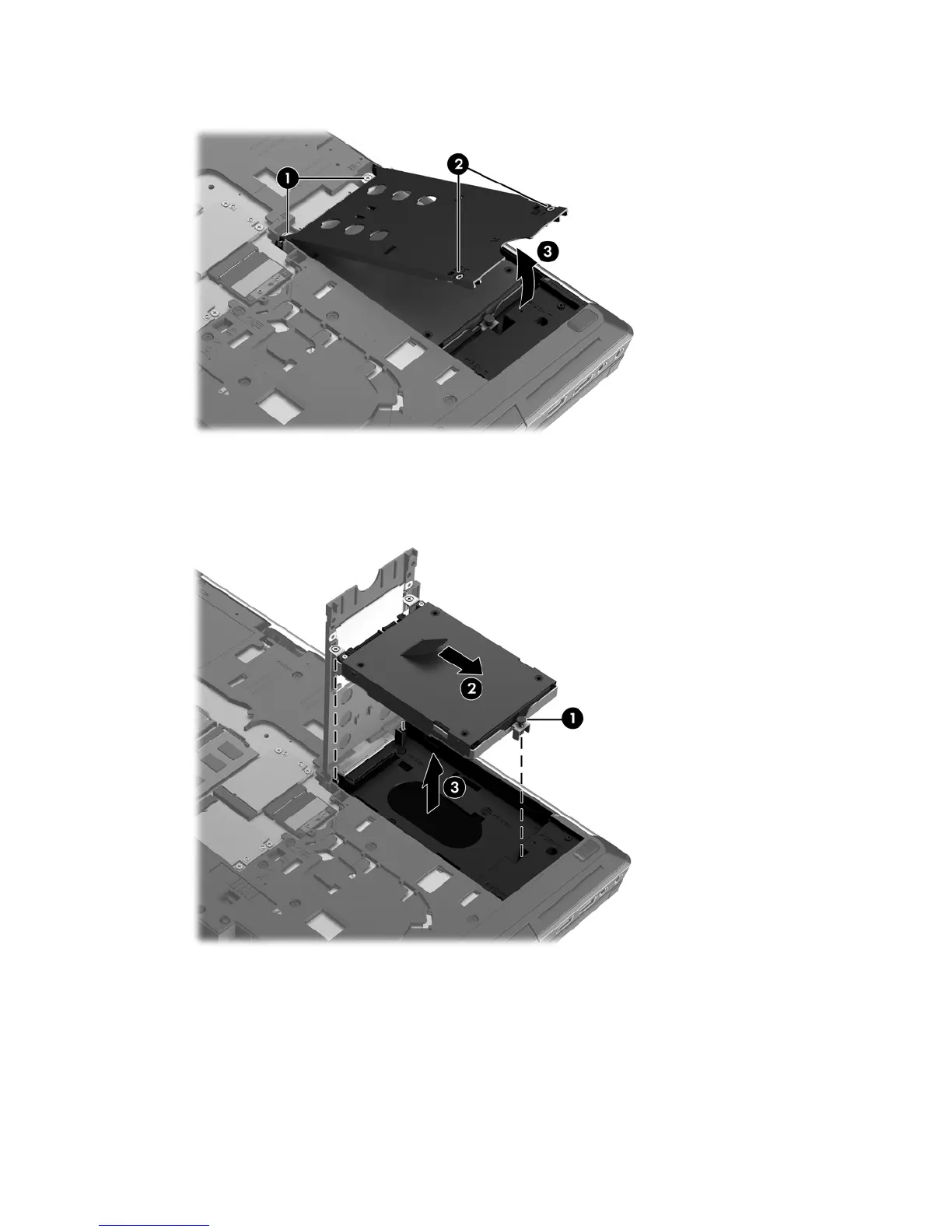 10. Lift the hard drive (3), and then pull the hard drive out of the hard drive bay.