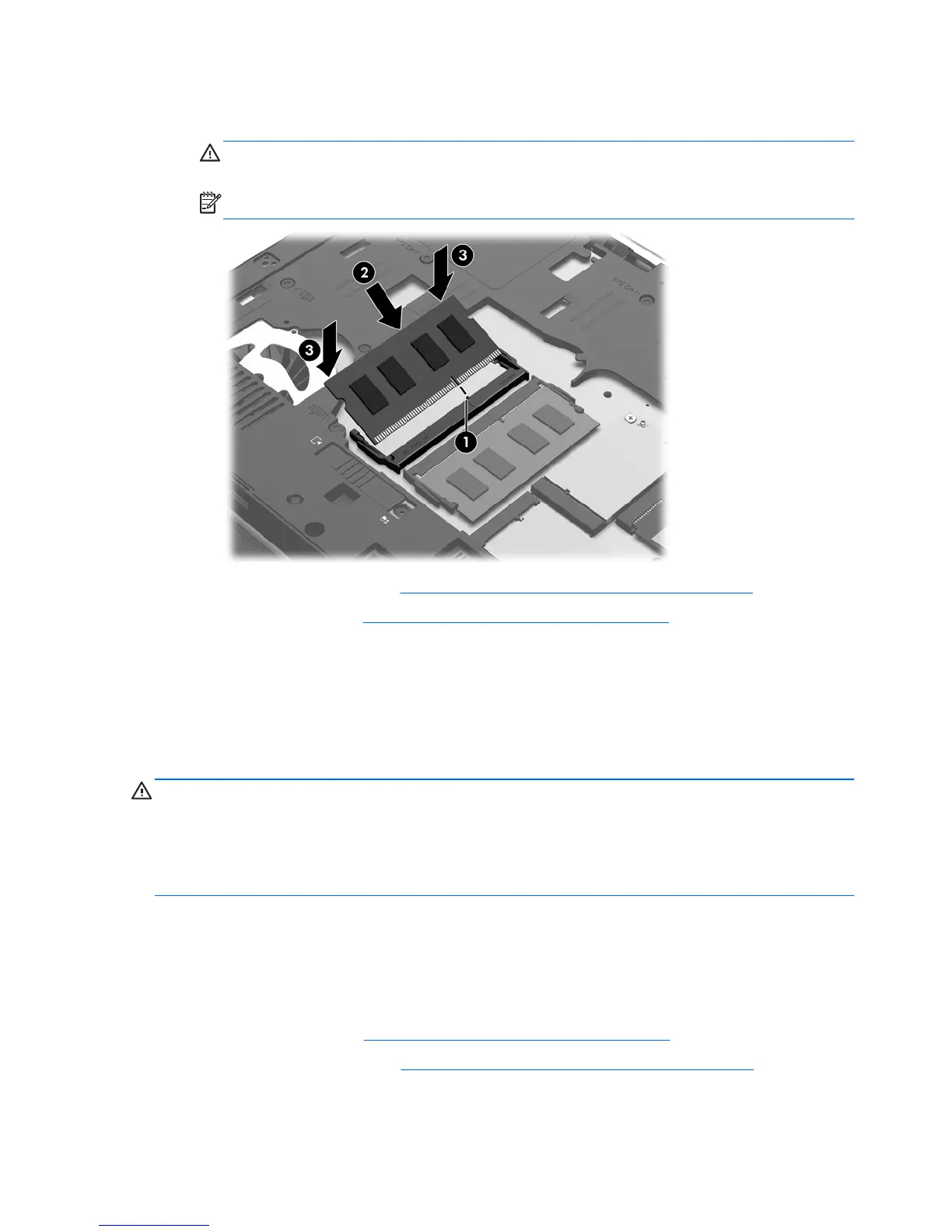 c. Gently press the memory module (3) down, applying pressure to both the left and right