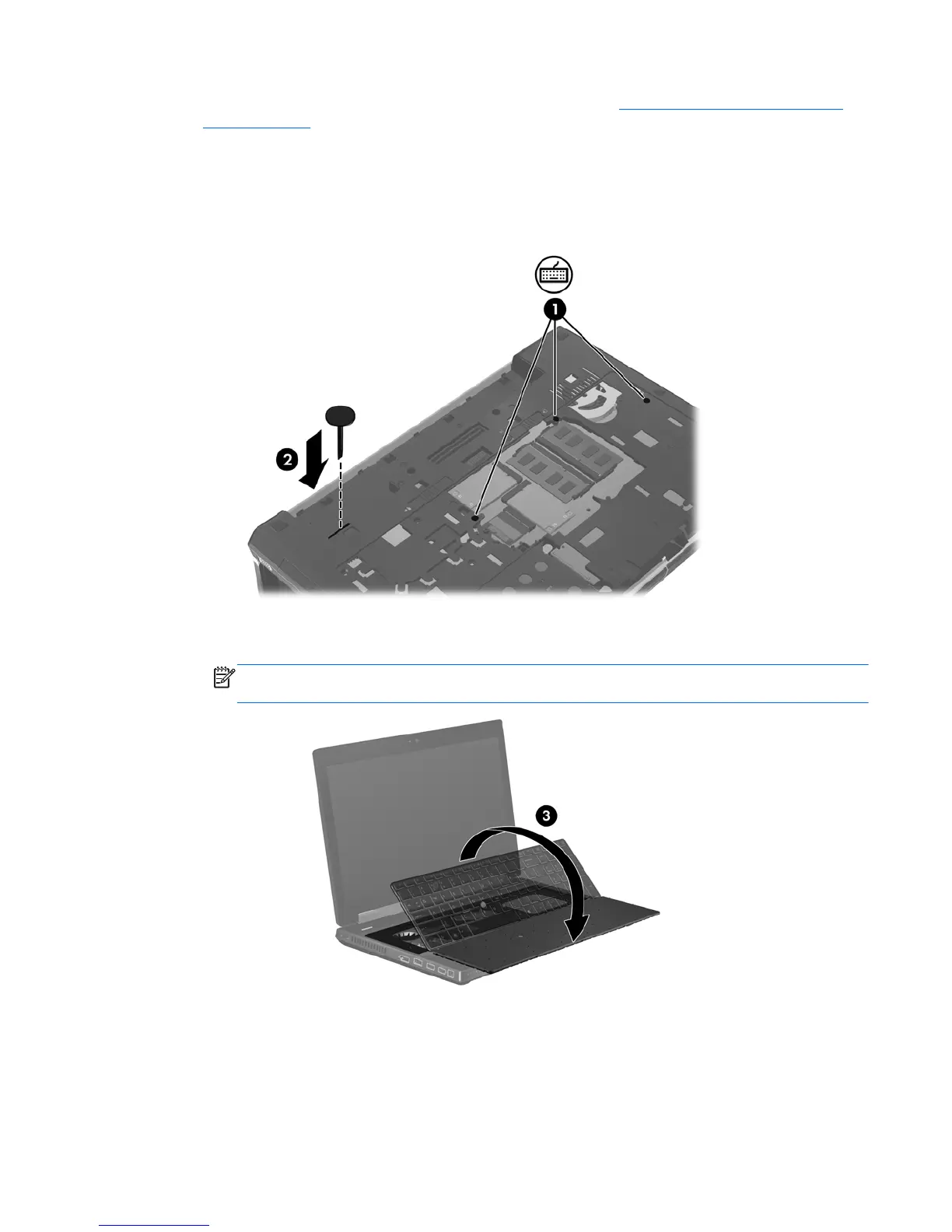 NOTE: Do not disconnect the keyboard cable. To avoid disconnecting the keyboard