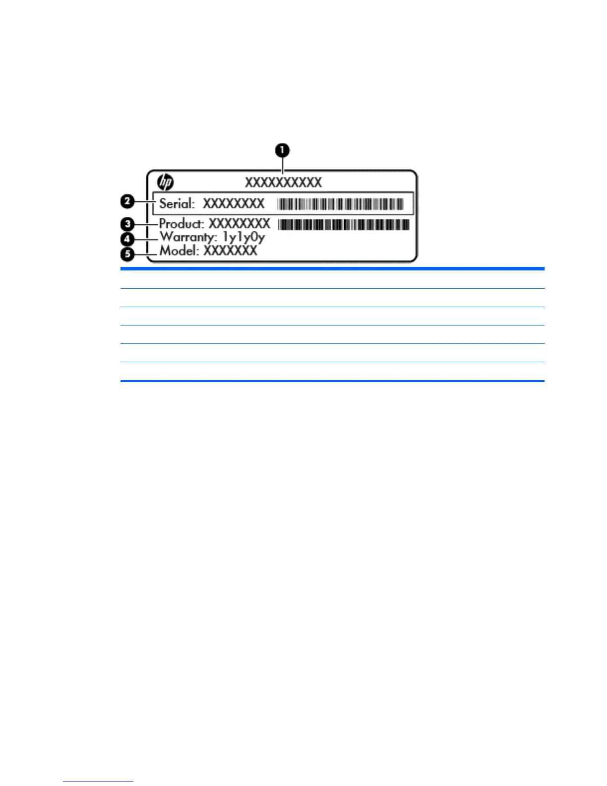 number of the HP Mobile Broadband Module. This label is located inside the battery bay.